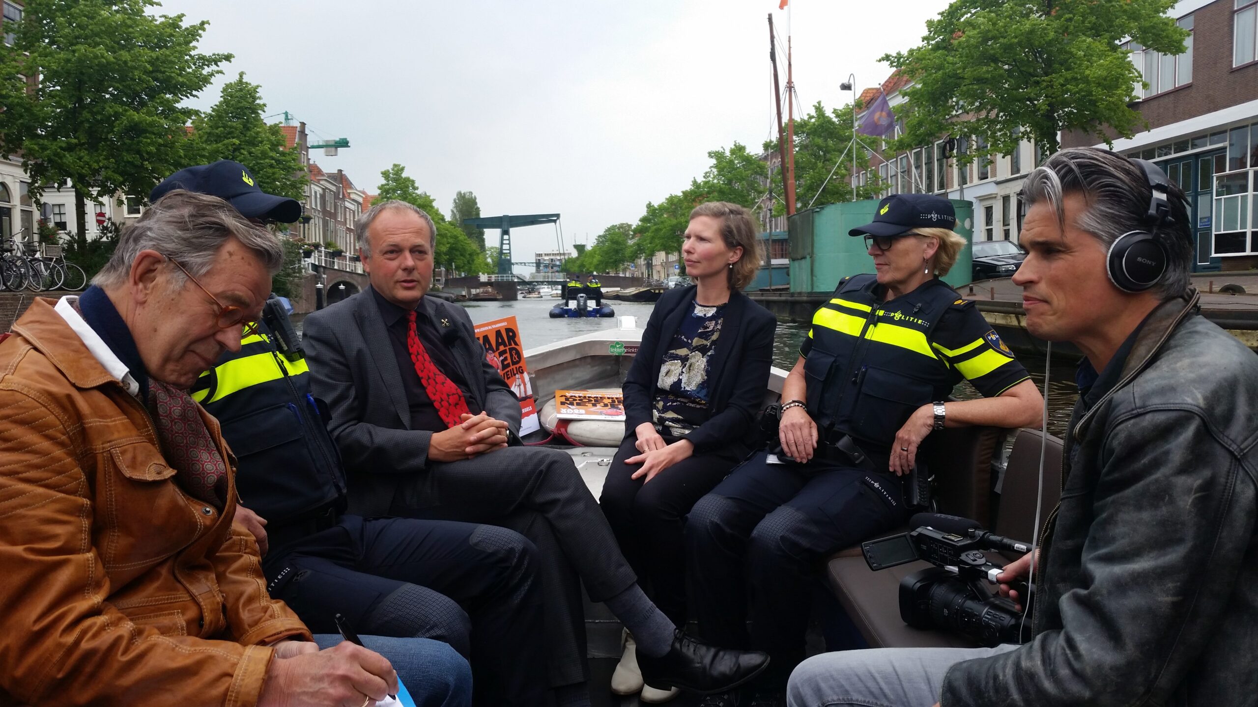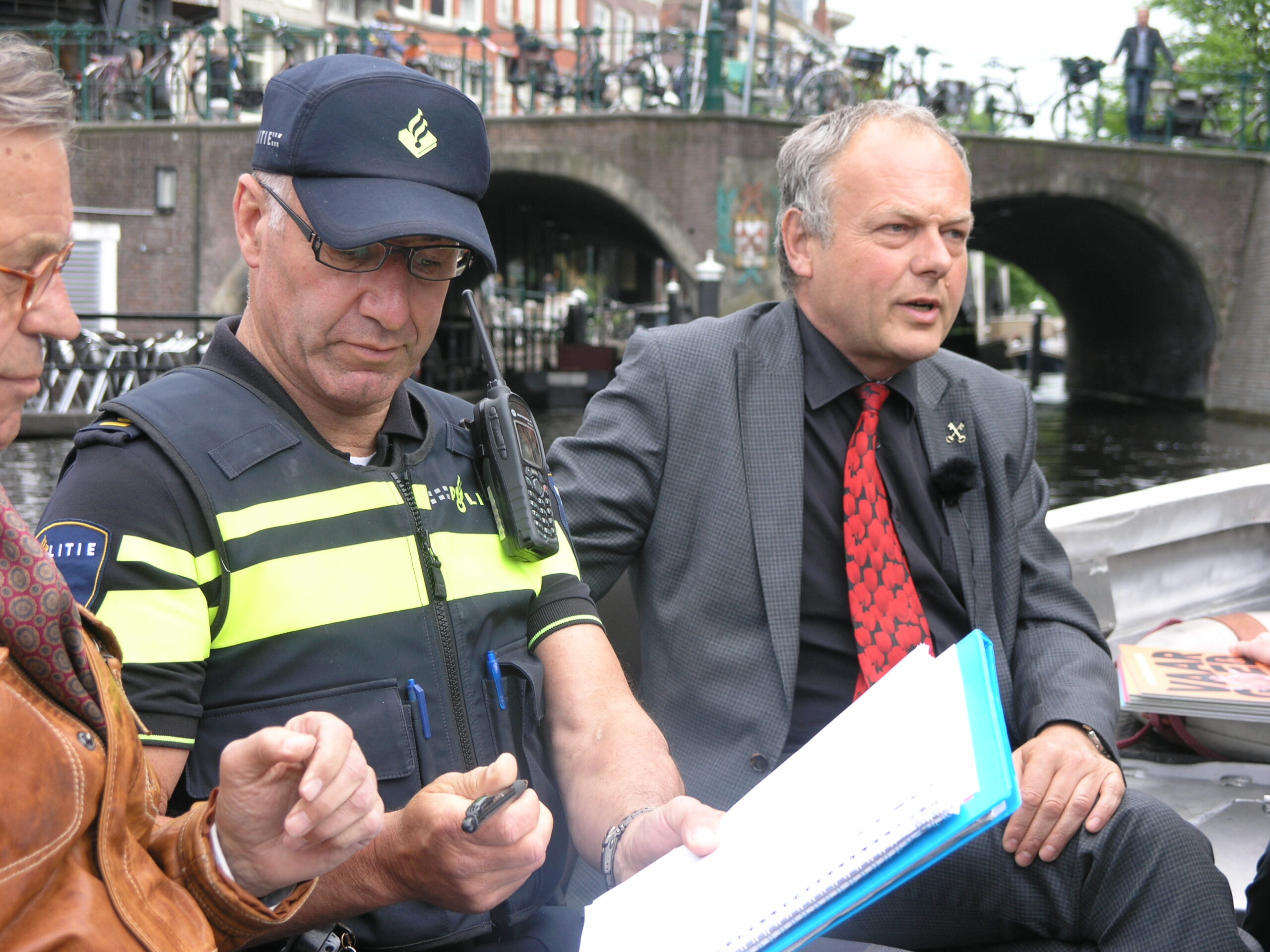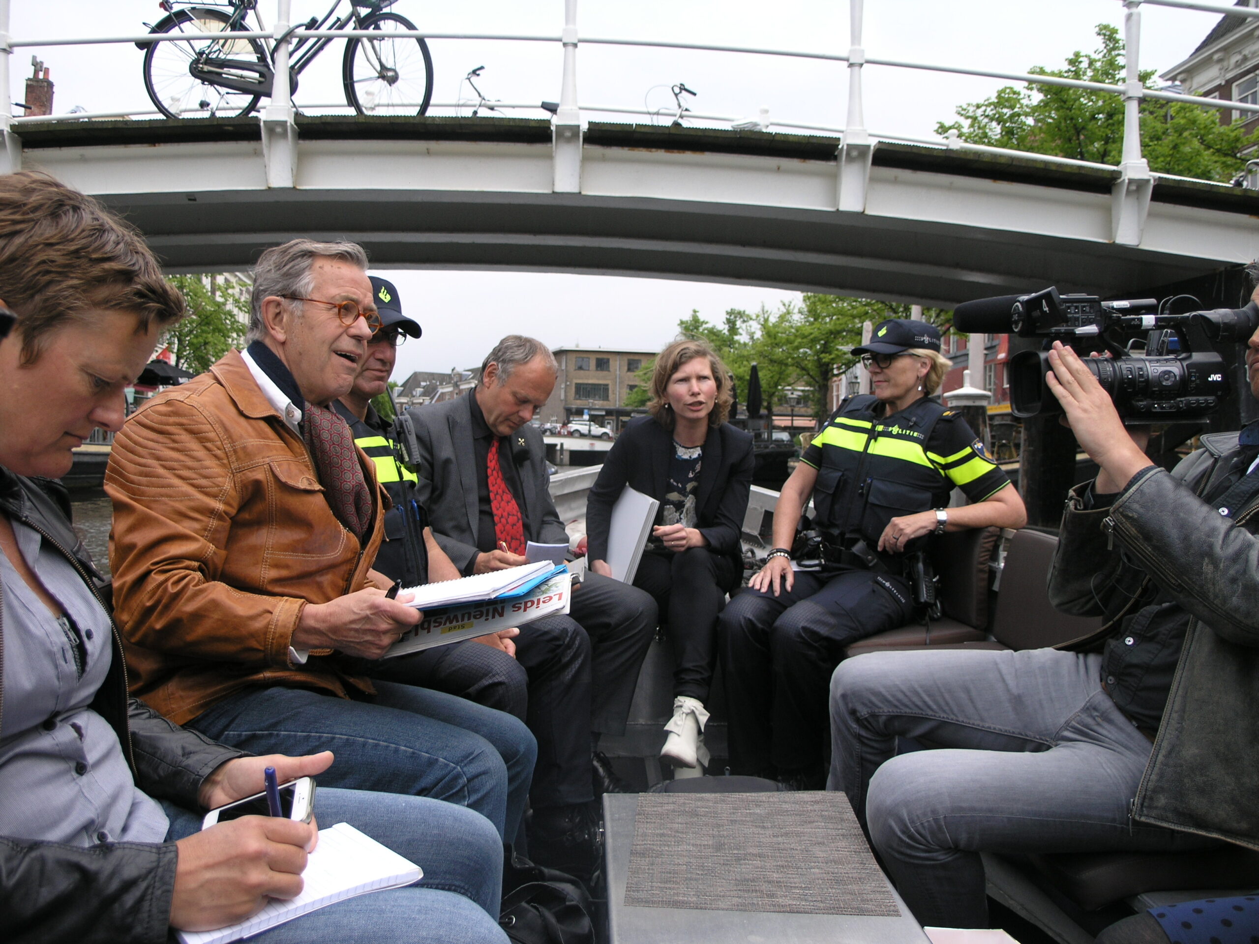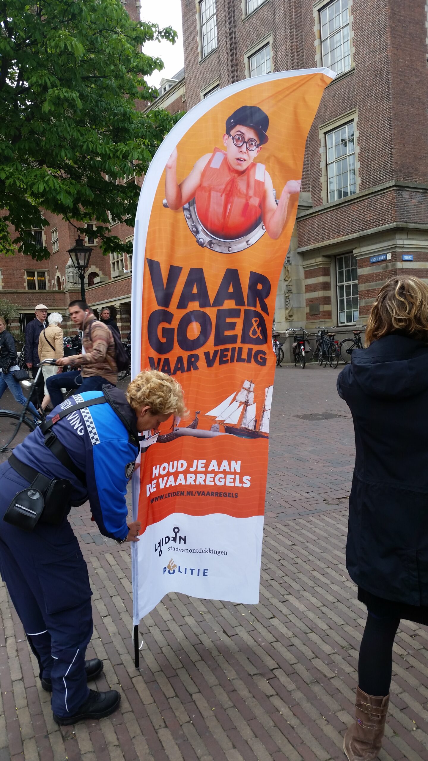 Met een serie posters en flyers gaat de gemeente Leiden het komende vaarseizoen aandacht vragen voor de veiligheid op het steeds drukker wordende Leidse water. Donderdag ging die campagne officieel van start met een vaartochtje door het centrum. Daarbij geven burgemeester Lenferink en plaatsvervangend districtschef Hil Renema een toelichting op de belangrijkste vaarregels waar iedereen zich aan moet houden.