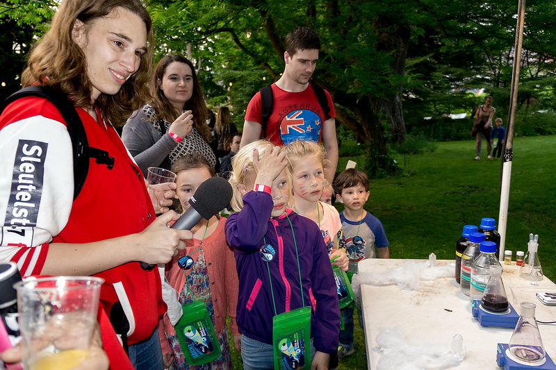 In de Hortus, waar ze de ingang onveilig maakt, is op en top zomer. Een terras, een Oranjerie – overvol tijdens het optreden van Michaël Prins – een ginproeverij “een Léidse vinding, wist u dat? Eigenlijk de eerste jenever”, heksenbrouwsels en eindelijk zowaar die typische zware zomerse bloemengeur. Hortus-tuinman Jacob(58) moet helpen van welke plant: “de Blauwe Regen. Je kent vast z’n familie de Gouden Regen. Deze blauwe is nog door Von Siebold naar Europa gebracht”. Of “Hortus-gids” Michelle(21) “door hun gebombardeerd tot, hoor, want ik studeer biologie” dat weetje wist… ‘Hun’ is een groepje onder ‘leiding’ van reisleidster Sabina(24) die “nog naar RMO, Erfgoed en de lichtshow” gaan en vooral enthousiast zijn over de sfeer “gezellige mensen die iets aan het dóen zijn in plaats van alleen maar kijken”.