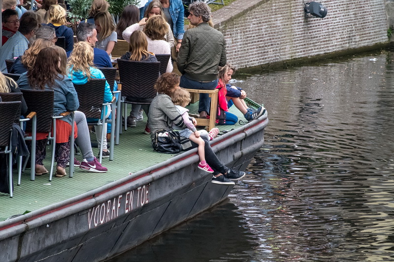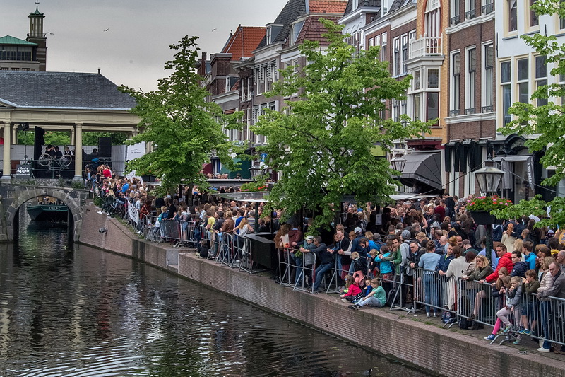 Naar schatting waren er tijdens het optreden van Douwe Bob zo’n 1500-2000 mensen op de been. Een mooi aantal om overal te kunnen komen (tenzij de sterren ergens waren). Niet een typisch Open-evenement, maar wel een erg goed. Een prima sfeer, veel tevreden mensen. Voor Leidse begrippen zelfs spektakel, toen twee jongens de uitdaging van Douwe Bob oppakten “wie er in springt, krijgt een biertje” en in de gracht sprongen. Dat werd een biertje én het aanbod de (mogelijke) bekeuring te betalen. En de regen? Die hield het halverwege al voor gezien.