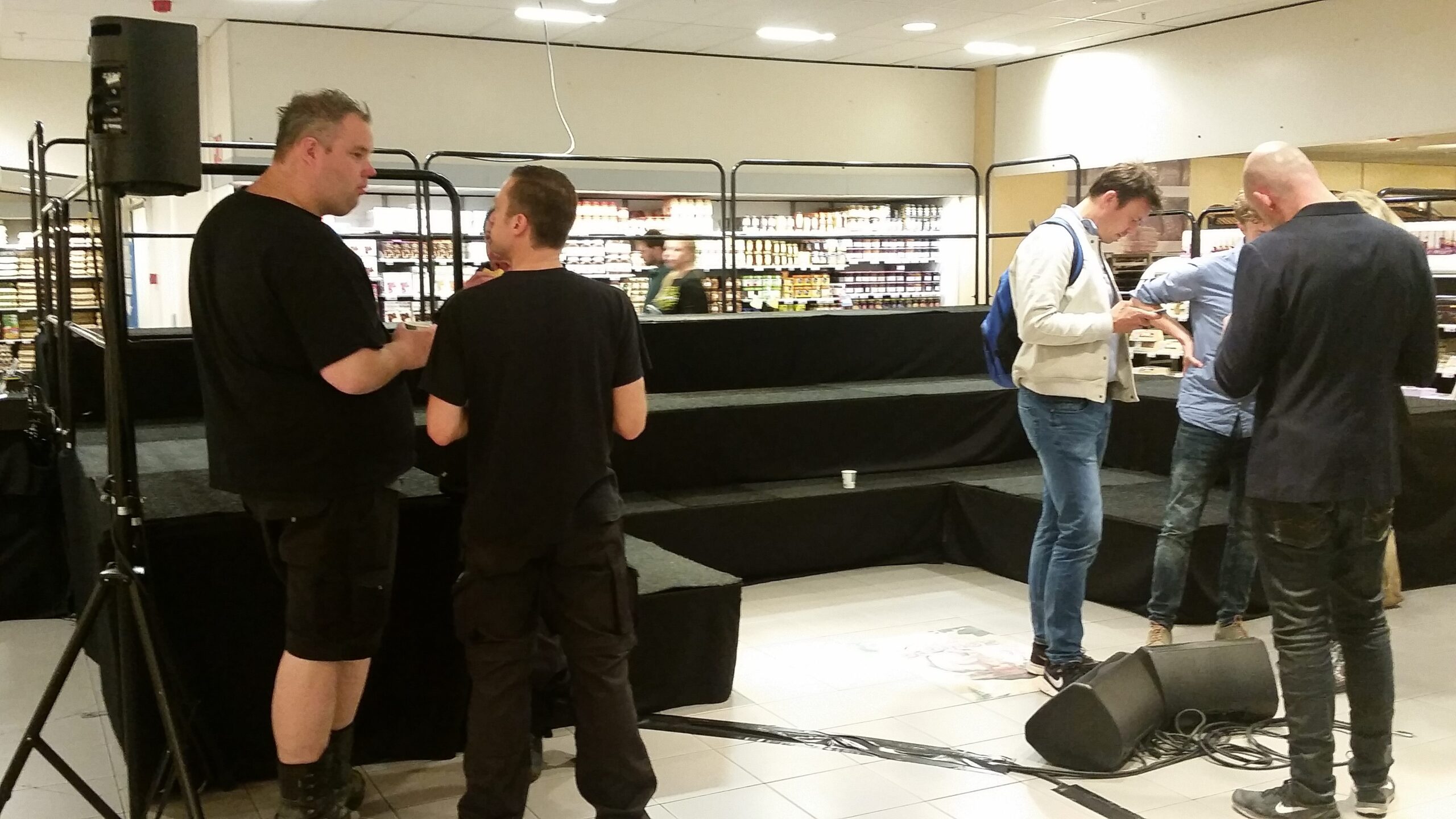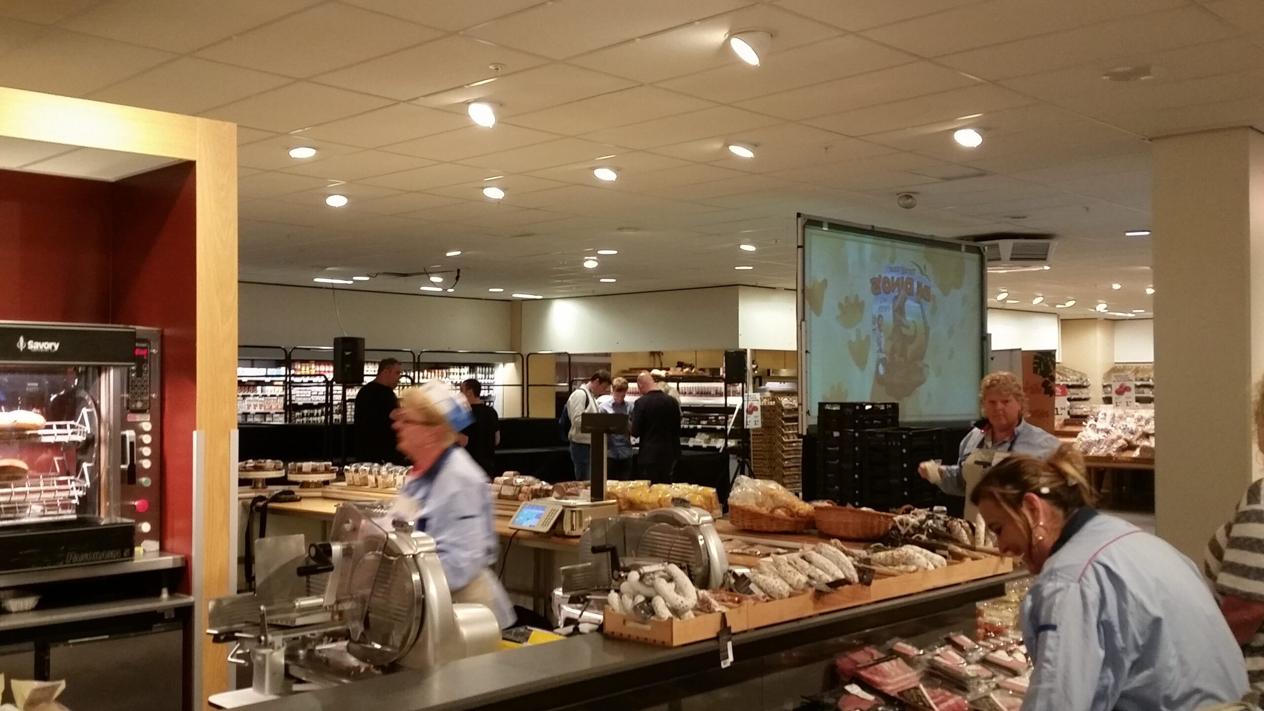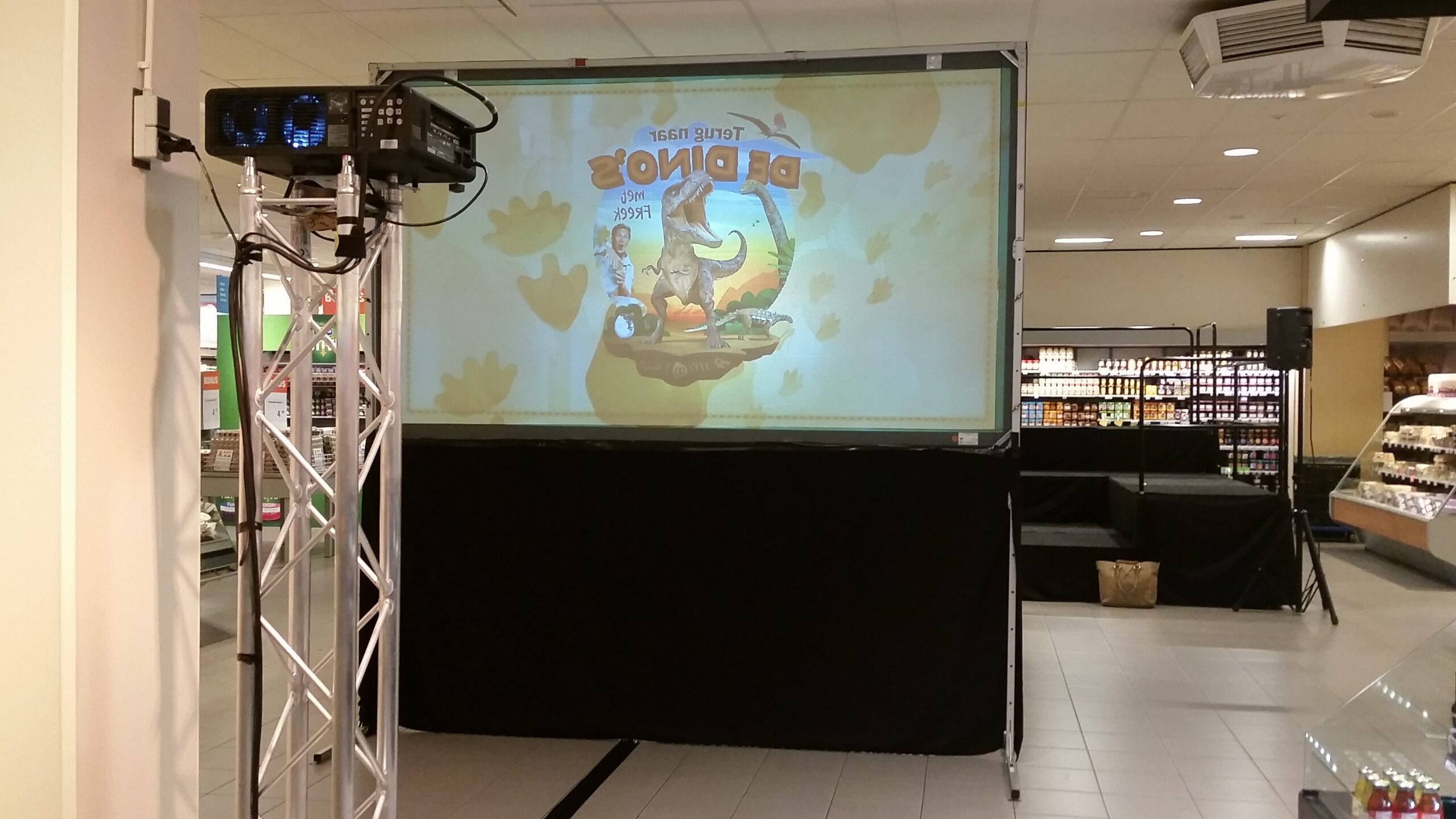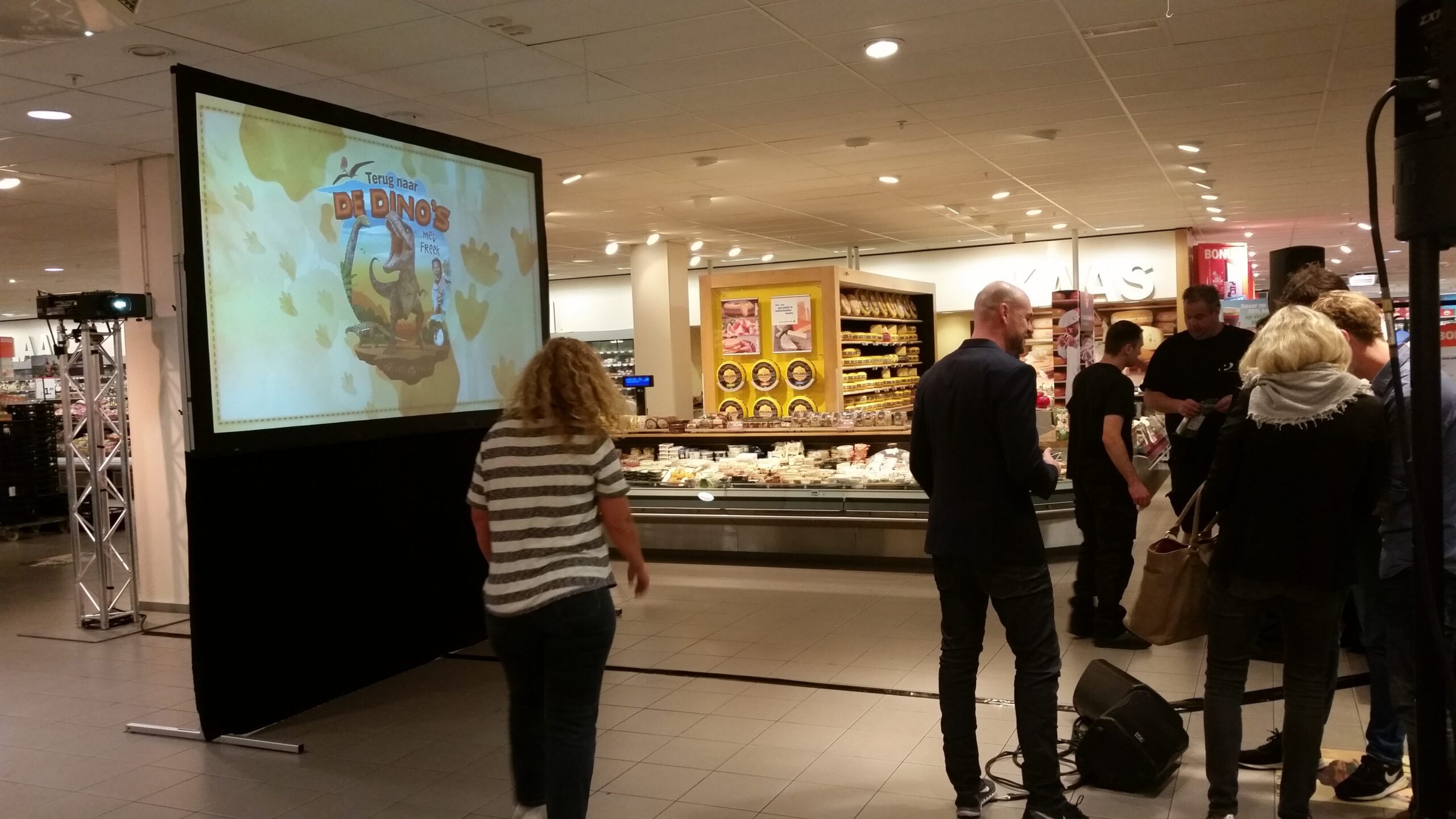 Bij AH XL werden vanmorgen de voorbereidingen getroffen voor een heuse T .rex show rond de bekendmaking van de naam. Vanaf maandag kunnen er bij Albert Heijn dino-plaatjes worden gespaard. (Foto’s: Chris de Waard).