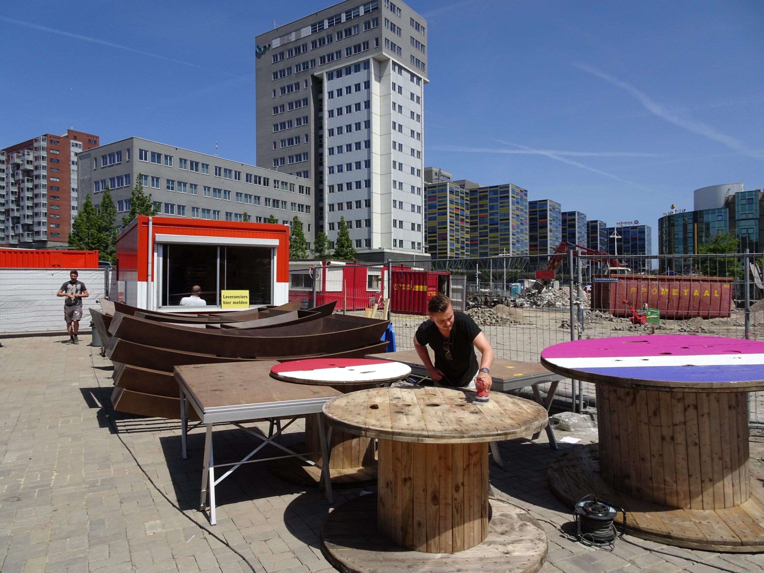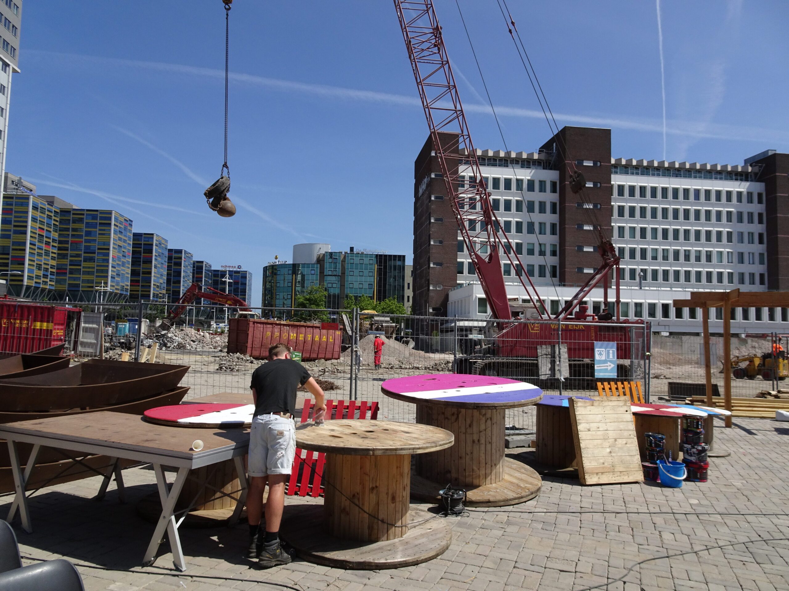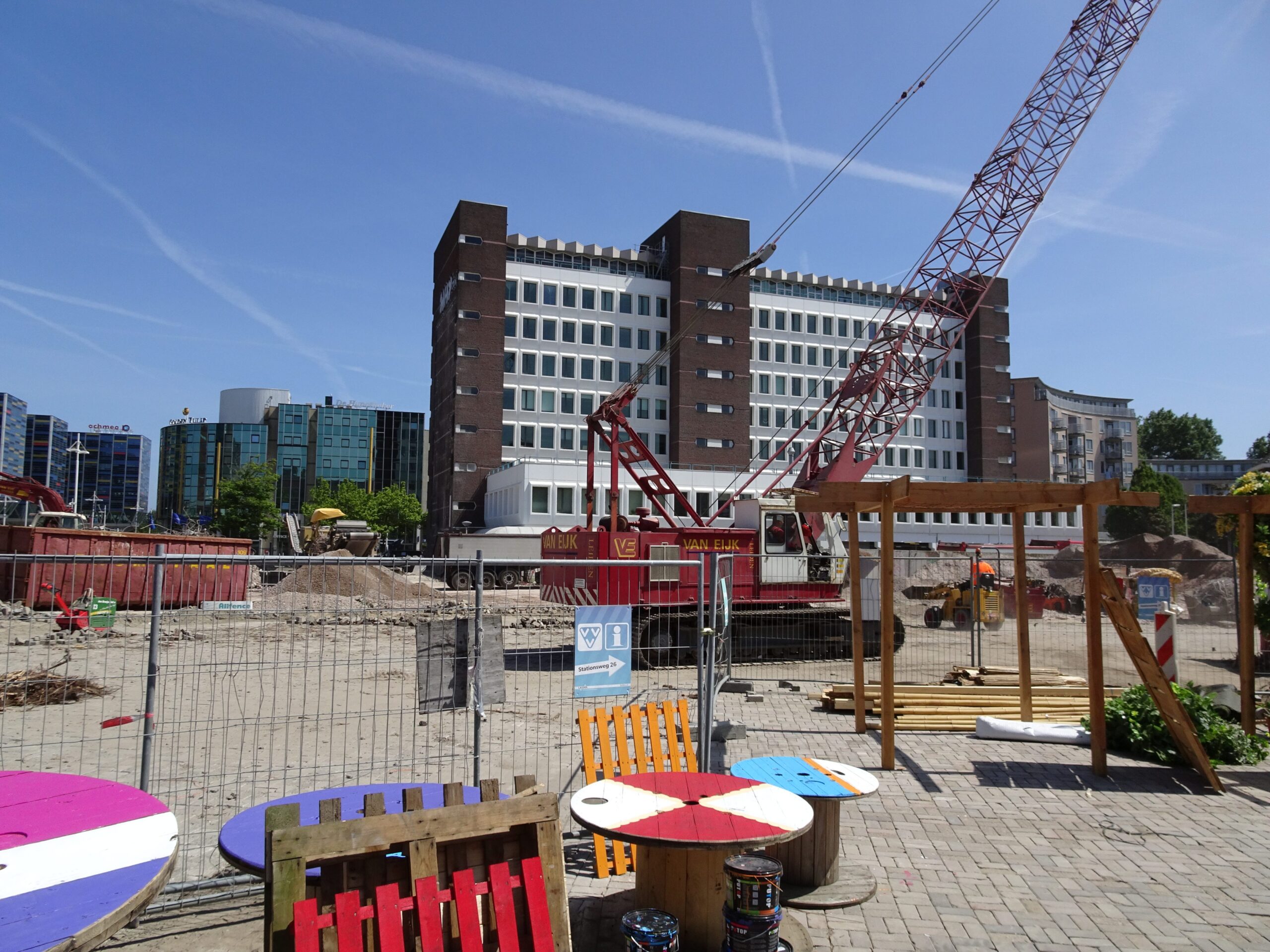 Pop-up wijk ‘De Buurt’ opent op 17 juni in het stationsgebied. De opbouw is inmiddels in volle gang. Vanaf volgende week vrijdag gaat de pop-up buurt een plek bieden aan een hele serie activiteiten, evenementen, pop-up restaurants, winkeltjes, sport en zelfs een stadsstrand.
