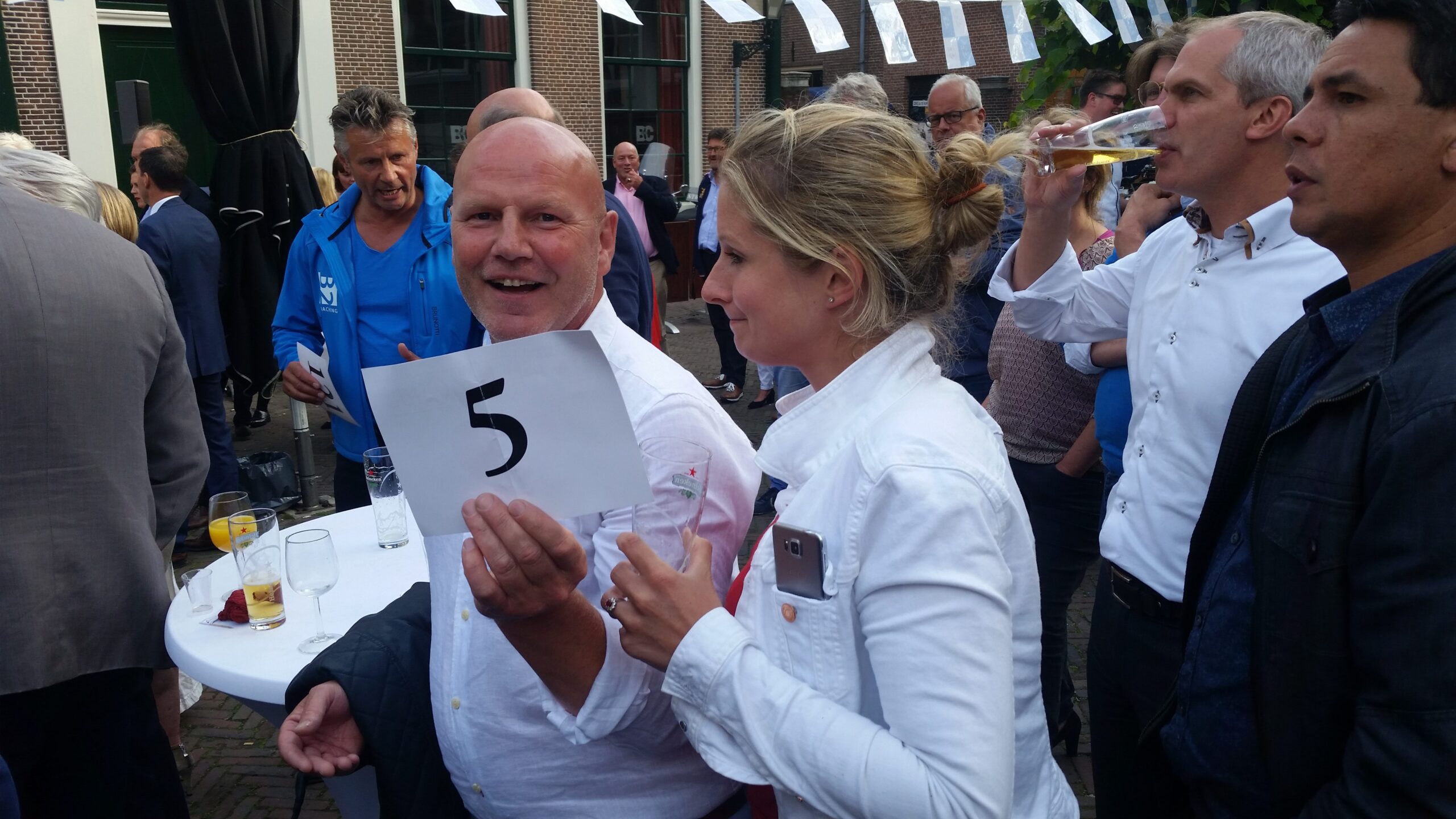 Chris de Waard nam een kijkje bij de veiling en sprak met winnaar Piet Sloos, Gildevoorzitter Gerda Schukking en veilingmeester Rudo Slappendel.