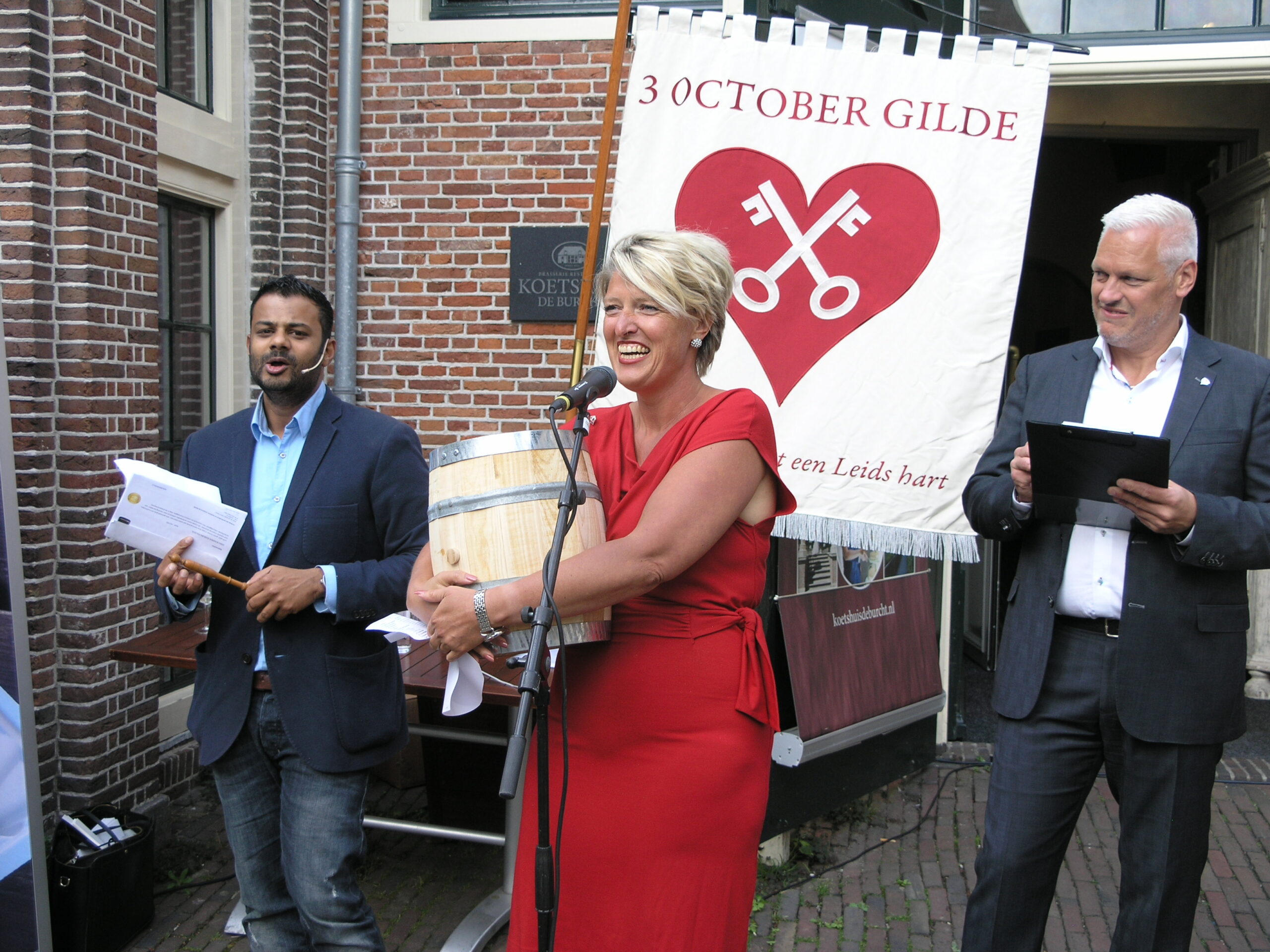 Maar liefst 16.550 euro is er vanavond bij elkaar gehamerd tijdens de haringveiling van het 3 Octobergilde. Dat is maar liefst 3.550 euro meer dan vorig jaar. Toen werd de rol van veilingmeester op het laatste moment overgenomen door Rudo Slappendel, omdat de vaste veilingmeester, D66-voorman Alexander Pechtold, op het laatste moment verstek liet gaan. Een debat in de Tweede Kamer ging voor. Ook dit jaar zegde Pechtold af en daarmee verspeelde hij ook de functie. In Slappendel lijkt een waardig opvolger gevonden te zijn.