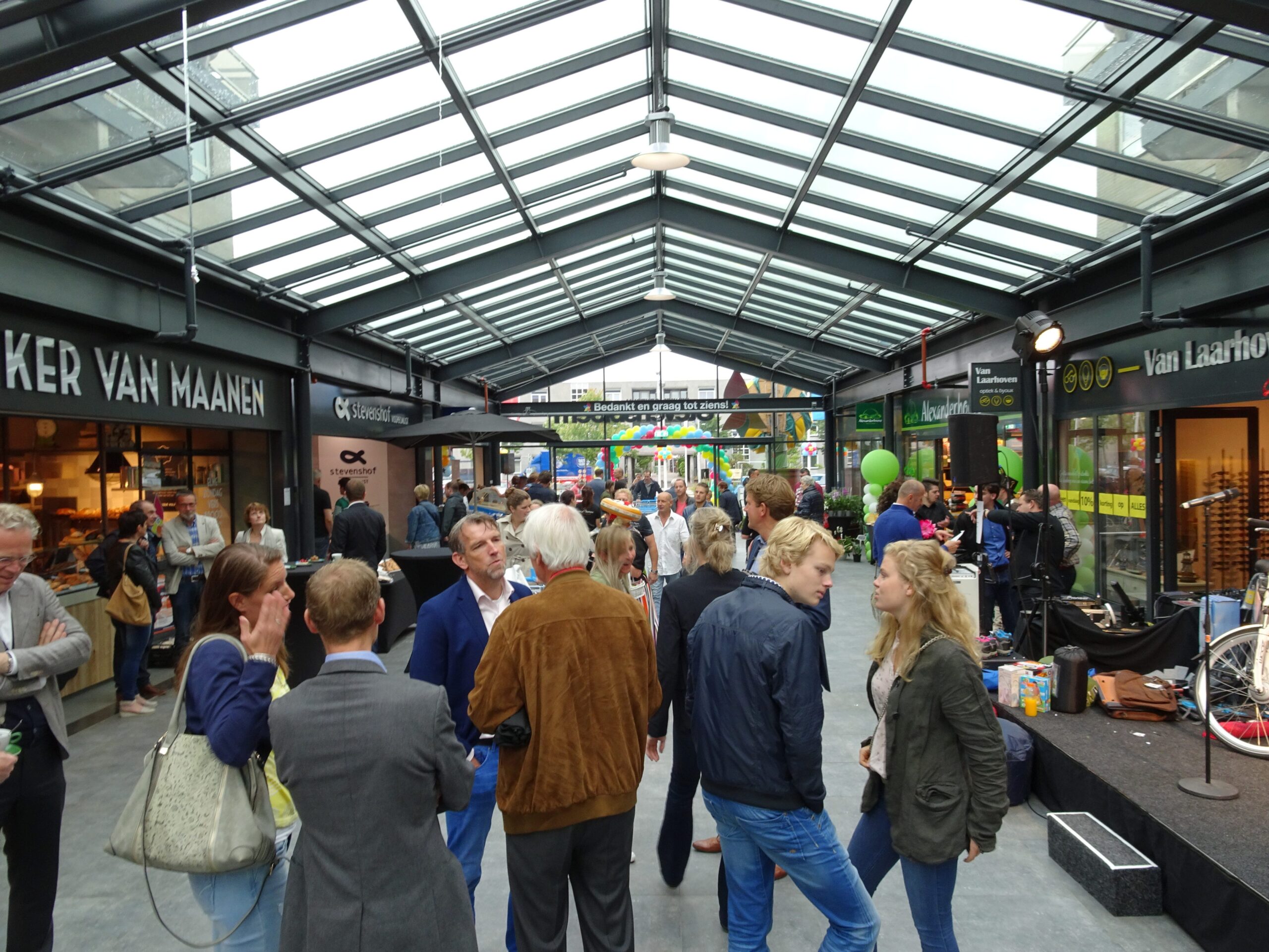 Ook wethouder Robert Strijk was bij de opening aanwezig. “De Stevenshof heeft er met dit winkelcentrum een hele mooie nieuwe ontmoetingsplek bij. Je ziet dit steeds vaker terugkomen, twee grote supermarkten met daaromheen een aantal ambachtelijke leveranciers zoals een vishandel en een slager. Dat versterkt elkaar.”