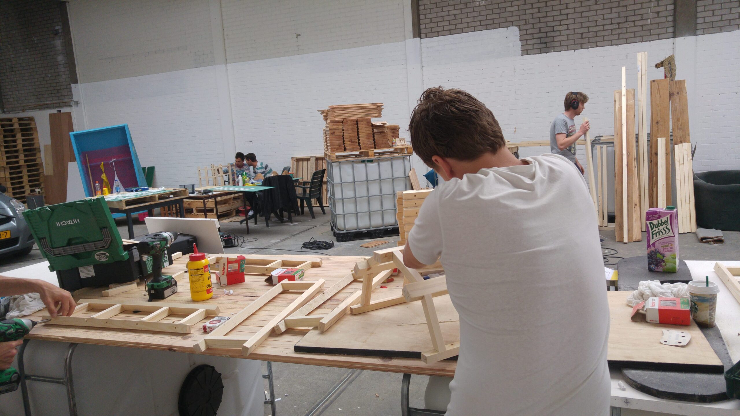 Zo’n ruim honderd vrijwilligers zijn op een of andere manier voor PUUR Festival in touw “nee, we leven geen van allen van PUUR. Iedereen doet er in meer of mindere mate ‘iets’ naast”. Die zijn de festivaldag in touw, maar bijvoorbeeld ook in de aanloop als decors worden gebouwd “in een antikraakpand in Den Haag, want Leiden is veel te duur als je daar grote werkplaatsruimtes zoekt”. Daar is de vreemde spanning weer tussen een behoefte en mogelijkheden. Zonder enige subsidie is het zuivere ondernemingszin – en -intuïtie! – om het festival van de grond af aan op te bouwen.