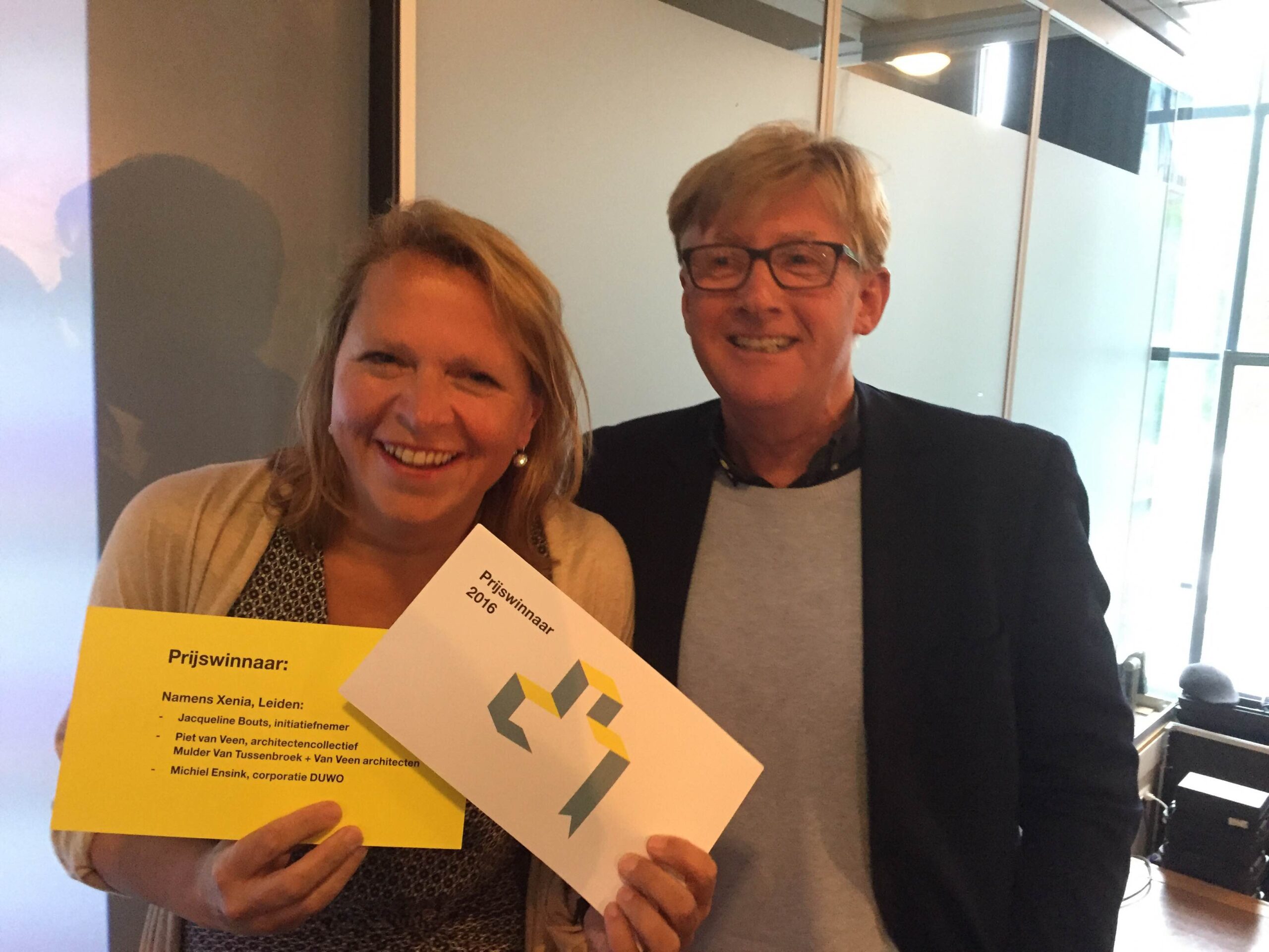 Chris de Waard in gesprek met Jacqueline Bouts en Piet van Veen over Xenia en de prijs.