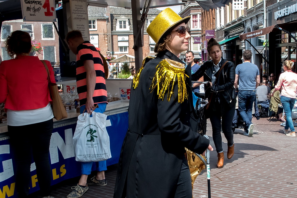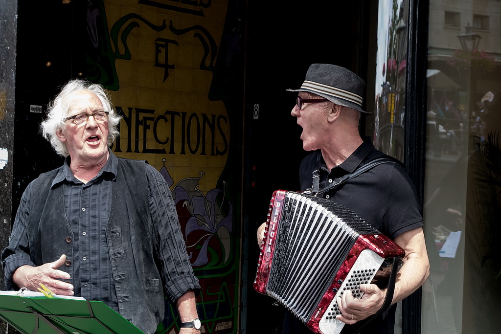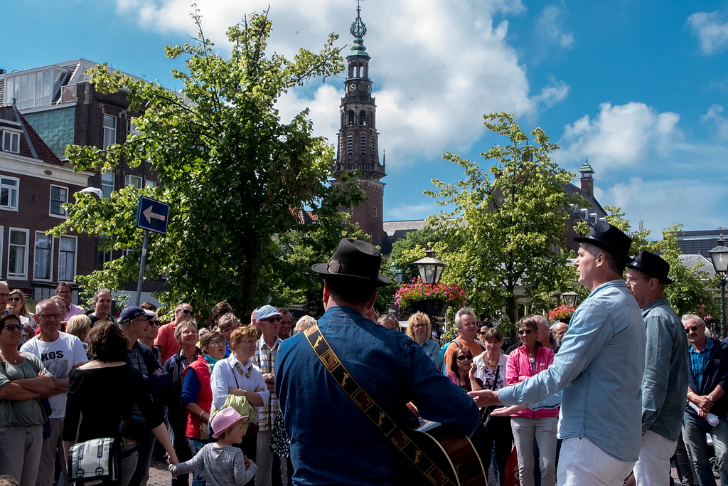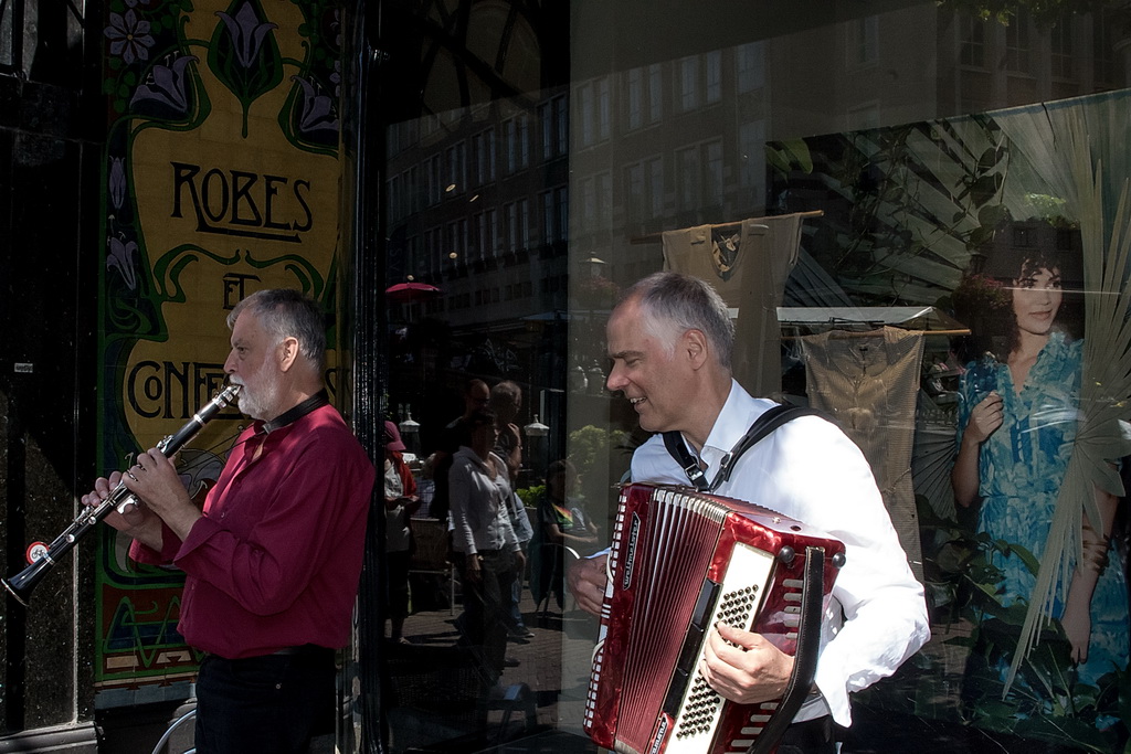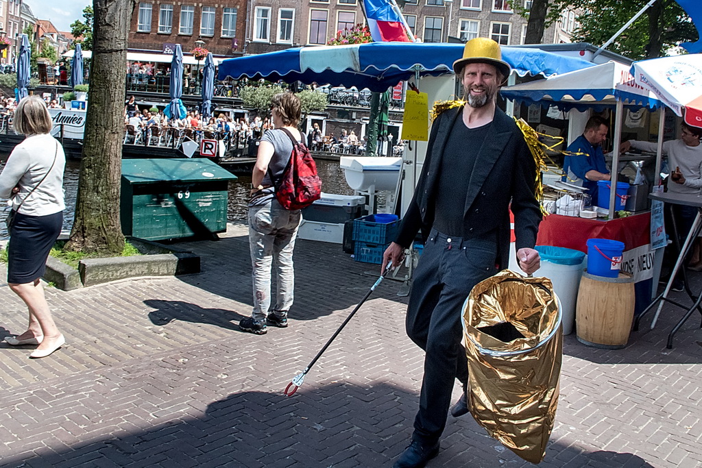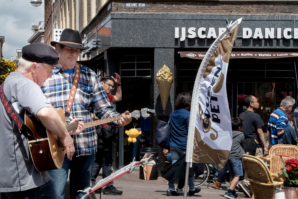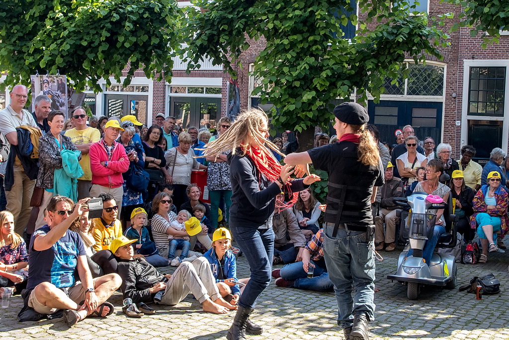 Wat weer opviel, is dat Leiden zich niet heel erg veel gelegen laat liggen aan festivals. Ook nu kruisen fietsen dwars door optredens heen, maar ook scooters (aan de hand met de motor aan). Bij Palaver, Lanyok en Eldorado stoorde dat. Het is al lastig om publiek te laten stoppen en vast te houden. De Kelvinators kunnen er best iets van, maar op de Nieuwe Rijn kostte het moeite mensen tot luisteren te bewegen. Waar ‘m dat in zit? Aan de overkant bleven mensen wel staan bij de Schwarzwalderkirschband. Maar die spelen met z’n drieën, gekleed in Lederhosen, dan ook meedeiners. Aan kwaliteit ligt het niet. Iets als HK30 dat prachtige klezmer speelt, had baat bij het steegeffect: minder geluid én lagere passeersnelheid waardoor hun vrolijk-melancholische muziek je in de kraag kon vatten.