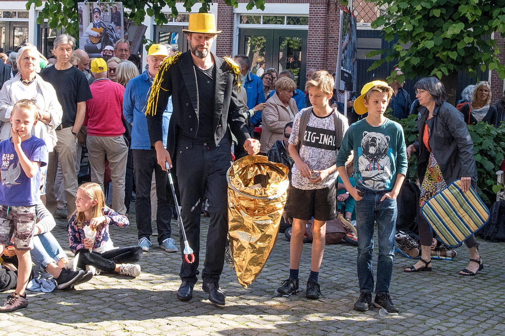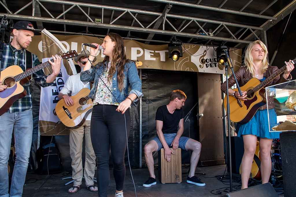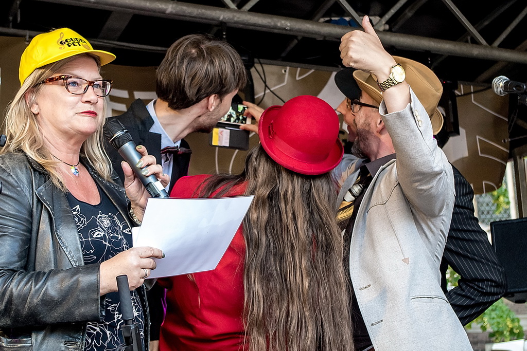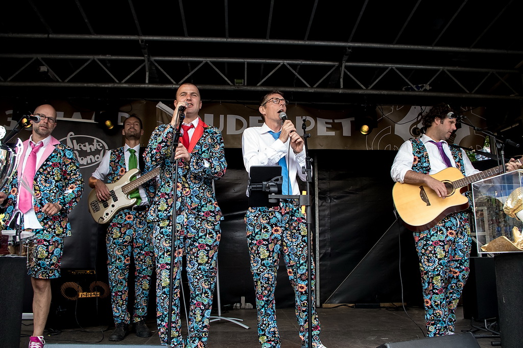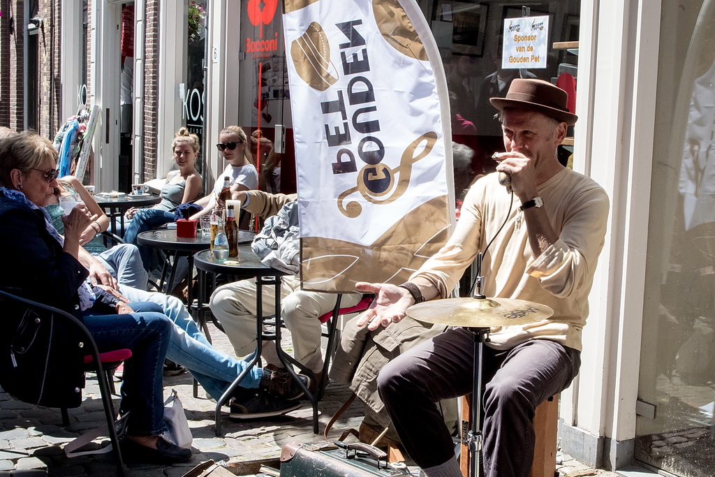 De Gouden Pet is een festival van ‘muziek op straat’, soms onvergelijkbaar: de solo-artiest tegenover de band, maar ook de sobere tegenover de showmens. De beste combinatie, in dat opzicht, was Originaliteitsprijswinnaar Charles Darwin Selection, die perfect aangekleed ook nog eens puike akoestische muziek maakten van ragtime tot jodel-country “en da’s een doodzonde volgens ons”. Als het aankomt op originaliteit is Haasnoot&Van Kempen vast en zeker ook een kandidaat (geweest) met niet alleen een zangeres die qua kleding zó uit de jaren zestig leek te zijn gestapt, maar vooral ook vanwege hun uitermate originele teksten en muziek: “kip met appelmoes” (is blues) of de vraag “wat de wind doet als het niet waait”. Of Kommer&Kwel die ook nog eens uitstralen wat ze zingen: melancholie. Je moet er van houden, maar dan ís het ook keigoed (voor miezerig regenweer, minder voor stralende zon).