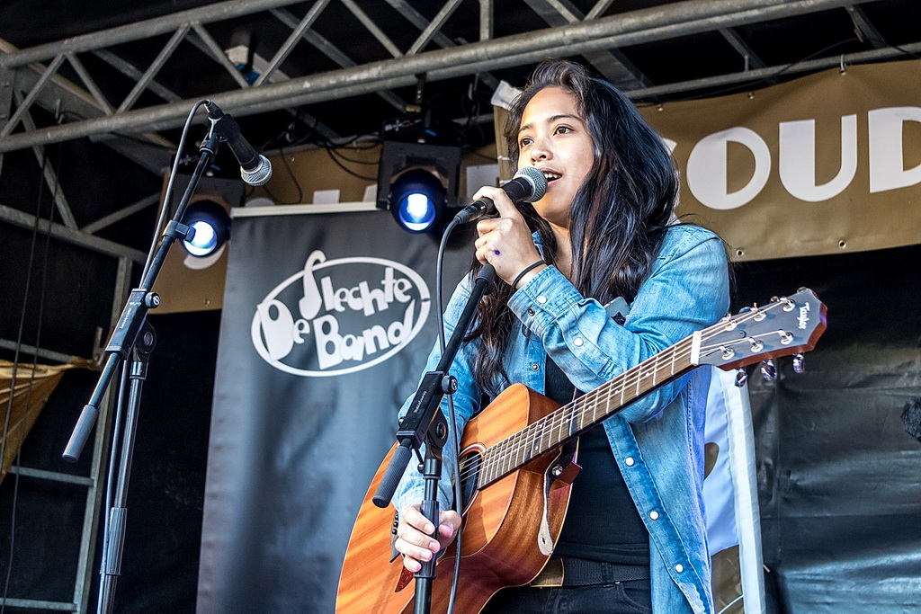 Marloes Claasen staat niet eens in het programmaboekje. “Ik heb me een week of twee geleden ingeschreven toen ik in de stad was en de aankondiging zag. Toen ben ik op een soort reservelijst terecht gekomen en afgelopen maandag hoorde ik dat ik kon meedoen”. En dat voor iemand die van zichzelf zegt dat ze “niet echt van dit soort wedstrijden is, want ik denk dat het me toch niet gaat lukken”. Nou, in dit geval wel. Sterker, Marloes Claasen zou om 18.00 uur optreden op het Utrechtse Festival Bombarie. “Maar dat is afgezegd toen bleek dat ik één van de zes genomineerden bleek te zijn”.