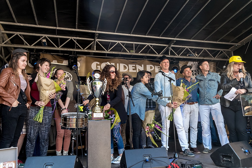 De geheel eerlijk verlopen publieksstemming leverde de winnaar van De Gouden Pet op: W8FF, dat meteen ook maar een nieuw lijflied voor Leiden introduceerde “het zou een hele eer zijn als dit nummer jullie lijflied zou worden”. Het publiek waardeerde die meezinger zó dat Jochem Myers lied er nu dus een concurrent bij heeft. Ze kwam laat, zag en overwon. Marloes Claasen uit Utrecht won de prijs van de vakjury. Twee winnaars; maar eigenlijk zou het gros van de optredende artiesten in aanmerking kunnen komen. De kwaliteit van het 30ste “en het grootste in Nederland” straatmuzikantenfestival was grotendeels top. Tel daar optimaal festivalweer bij op en veel bezoekers en je hebt een topfestival. In elk geval één uit de top tien van dertig Gouden Pettenjaren.