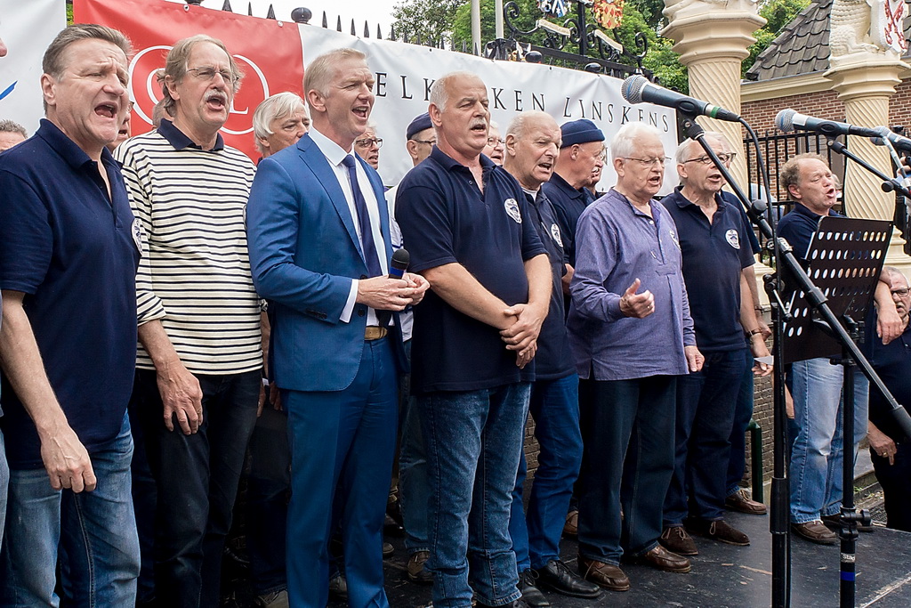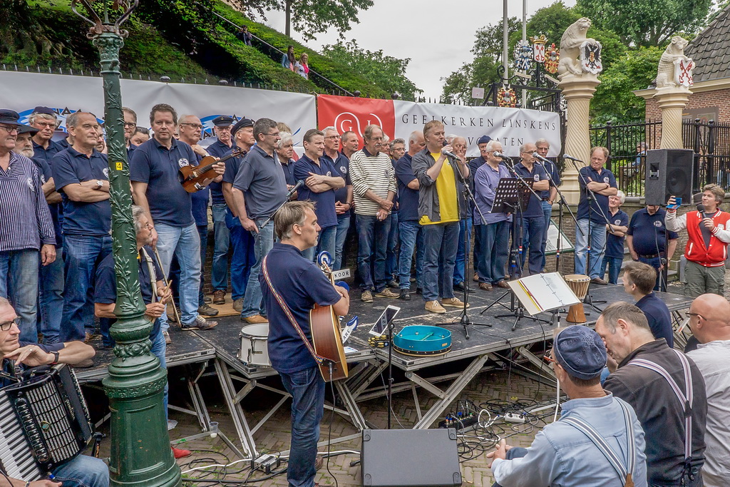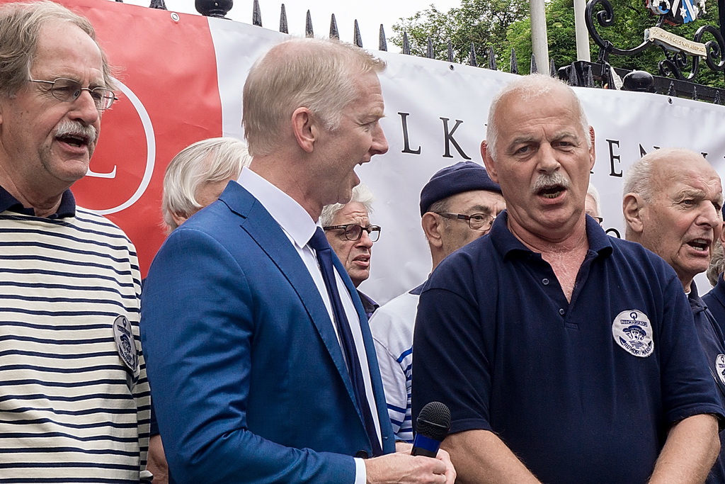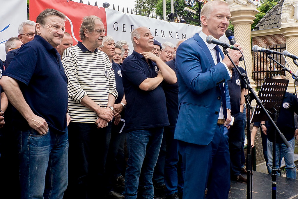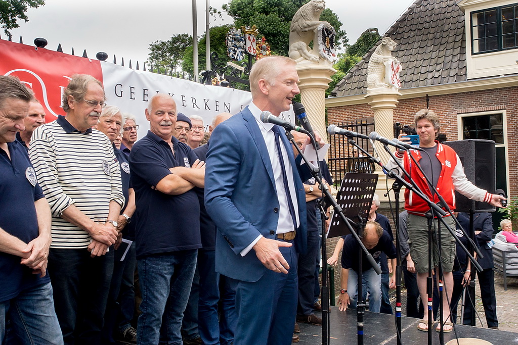 Een zingende wethouder hadden ze al eerder gehad bij de opening van het shantifestival op het Burchtplein, maar cultuurwethouder Strijk deed beslist niet onder voor zijn voorgangers Jan-Jaap de Haan en Henri Lenferink die hem in eerdere jaren voorgingen. Uit volle borst schalde het ‘stoere jongens ferme knapen’ zaterdagmiddag over het plein bij de burcht.