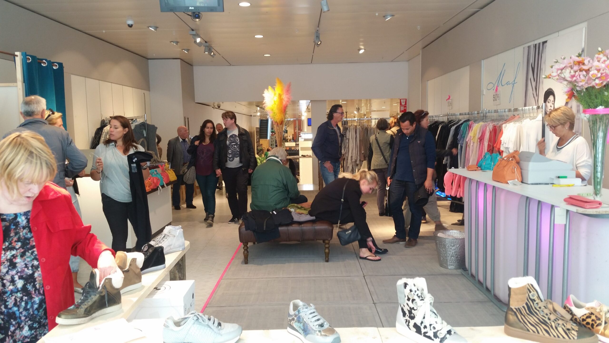 Vrijdagmorgen oogde het nog een beetje rommelig in het Pop-up Warenhuis Leiden. Overal werd toen nog druk gewerkt aan de tijdelijke verkooppunten in het voormalige V&D-pand en ook waren er nog de nodige gaten op de verkoopvloer. Oorzaak: enkele ondernemers die hun toezegging geen gestand deden en op het laatste moment besloten toch geen pop-up ‘shop in shop’ te openen. Maar zaterdag was het beeld totaal anders.