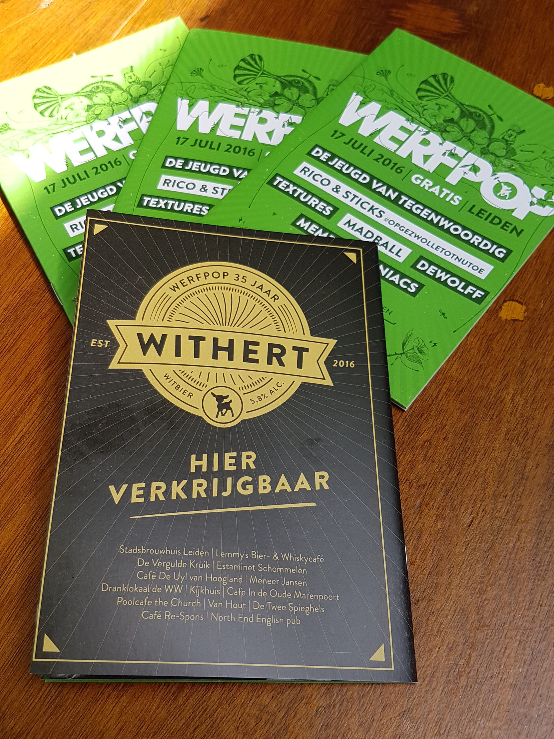 Voor de gelegenheid werd er door het Stadsbrouwhuis een speciaal Werfpopbiertje gebrouwen: Withert. “Die naam komt van de organisatie van Werfpop”, vertelt brouwer Peter Slotboom. “Dat is natuurlijk ook hun logo. Wij hebben dertig verschillende bieren gebrouwen en na een proeverij is mijn witbier tot winnaar verkozen.” In totaal is er 1500 liter van het werfpopbier gebrouwen. Waarschijnlijk is dat na het festival op, maar de echte fan zou nog eens bij de Leidse kroegen die hebben bijgedragen aan het bier een kijkje kunnen nemen. Daar zijn misschien nog wat restanten te vinden. Wellicht wordt er nog een Withert 2.0 gemaakt. “Maar dat zou dan voor de 36e editie van Werfpop zijn”, aldus de brouwer.
