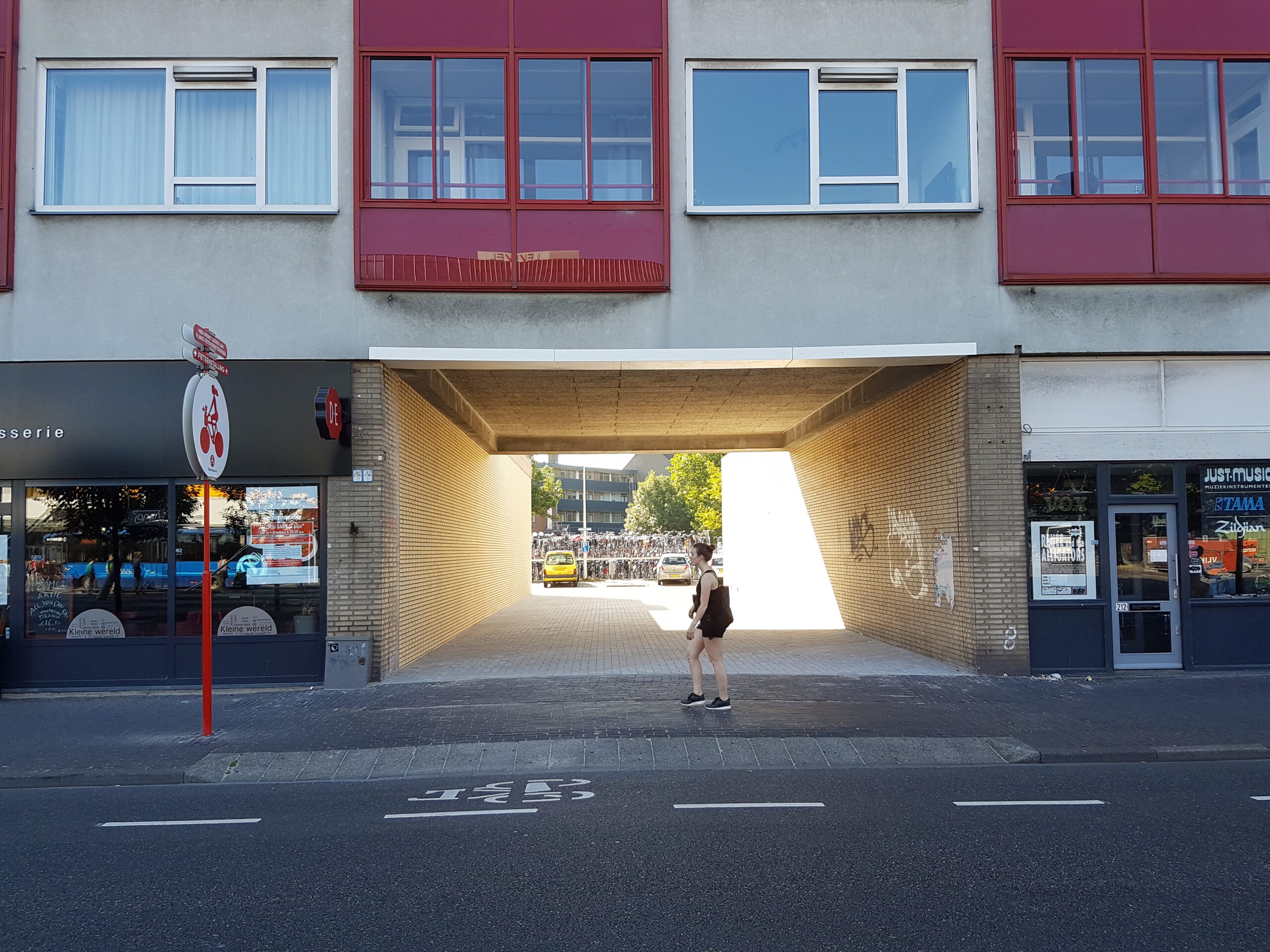 De onderdoorgang in de flat langs het Stationsplein is sinds vandaag weer open. De afgelopen weken werd de doorgang door flateigenaar Urban Interest in ere hersteld. Fietsers en voetgangers hebben daardoor weer een makkelijkere route van het Morssingelterrein naar het station en het busplatform.