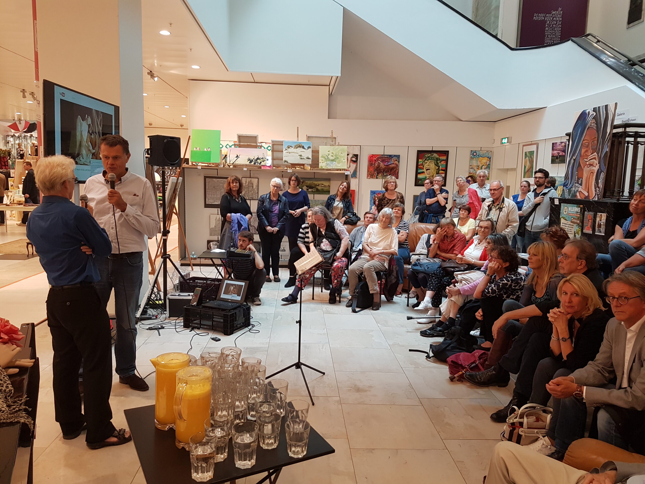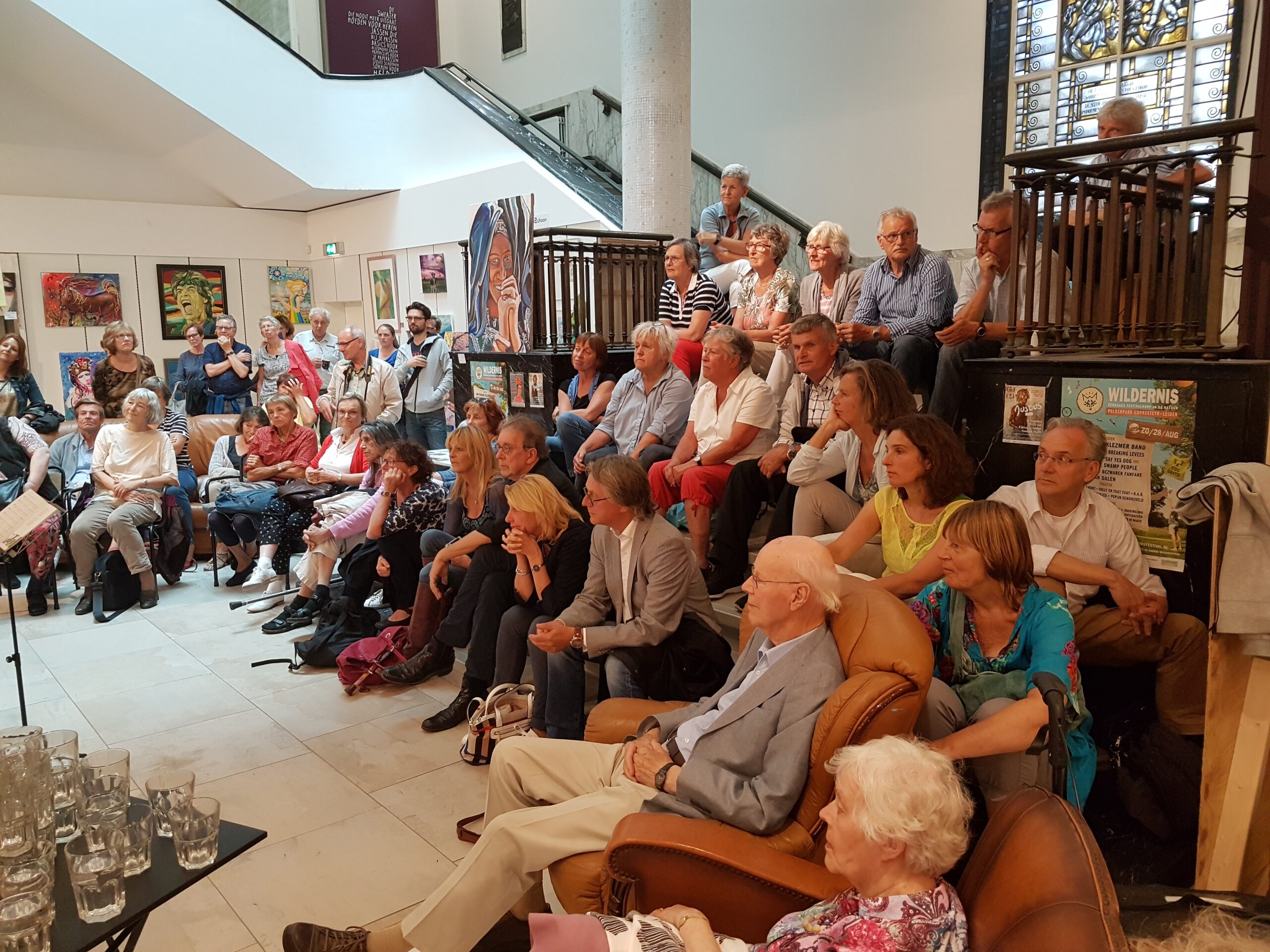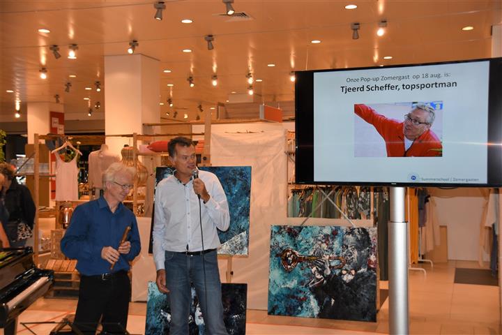 “Een leuke manier om elkaar eens in een andere setting tegen te komen,” vindt Van Es. “Maar toen hier een Pop-Up warenhuis kwam met de mogelijkheid om ook iets te organiseren, hebben we daar op ingespeeld door de laatste tee bijeenkomsten hier te houden. Met publiek. Ook al omdat de twee laatste gasten bekend zijn bij veel Leidenaren.