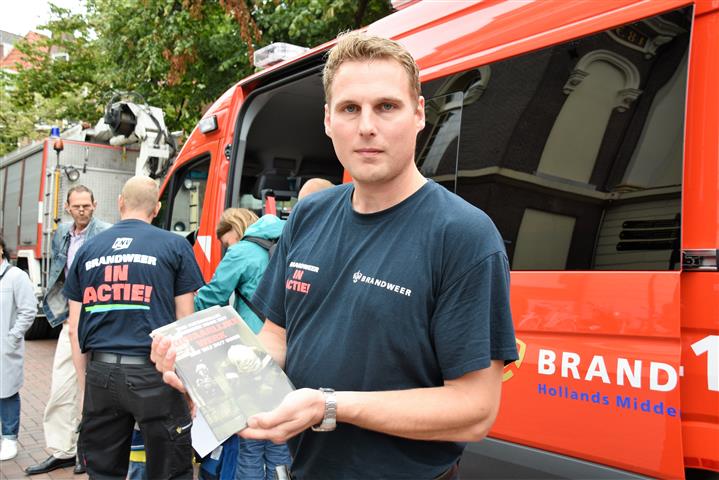 Brandweermensen hebben een mooi vak. Ze zijn zelf de eerste om dat te erkennen. Maar ook een zwaar vak. Daarom stoppen brandweermannen en -vrouwen eerder met werken dan mensen in veel andere beroepen. Maar, daarmee valt er wel een financieel gat. En daarom voerde de Leidse brandweer gisteren een publieksvriendelijke actie voor een betere regeling.