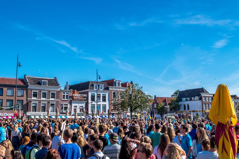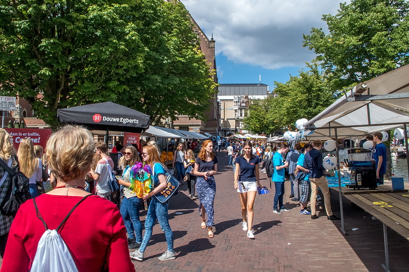 Het oudere echtpaar, van een ijsje genietend, zat aardig in de buurt met hun “iets met studenten” als antwoord op de vraag of ze wisten waarin ze waren terecht gekomen. Middenin de drukte van de Infomarkt, één van de eerste onderdelen van de EL CID-week. Dat is de introductieweek voor eerstejaarsstudenten aan de universiteit en de hogeschool. Ruim 3400 eerstejaars is (weer) een record, wéér meer dan het jaar ervoor. Toch zullen ze niet allemaal Leiden als thuisbasis gebruiken; sinds enkele jaren slaat de universiteit de vleugels ook uit in het stevig aan de universiteit trekkende Den Haag. Maar vooralsnog zal het gros van ‘Leidse studenten’ ook echt in Leiden zijn te vinden, zeker tijdens deze introductieweek.