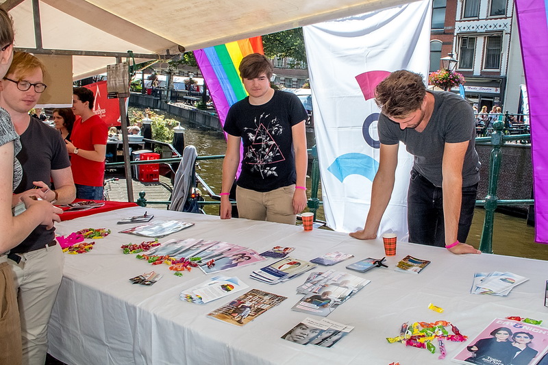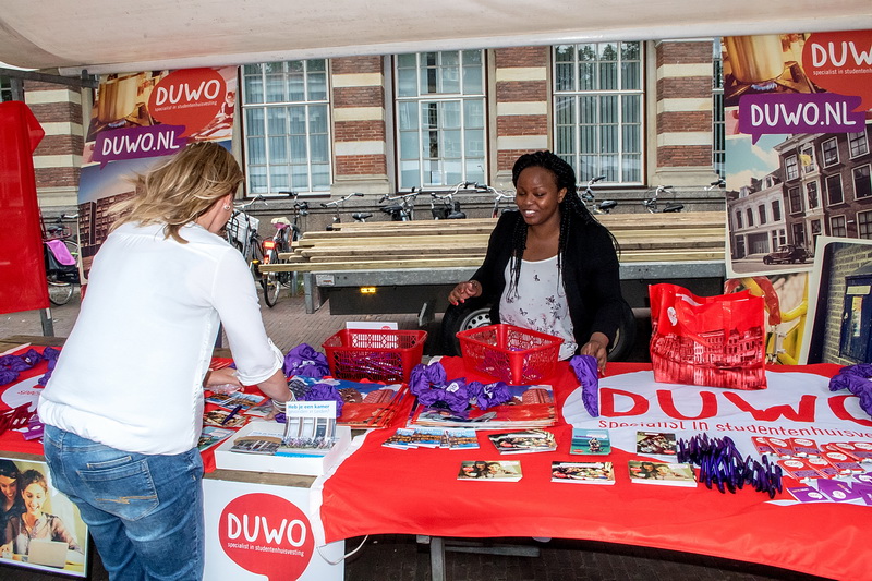 Iets gratis krijgen werkt in Nederland goed. Met dank aan het weer geeft Douwe Egberts met gemak zo’n 1500 ice coffee’s weg en café Odessa talloze ijsjes. Ook Knaeck doet goede zaken. De inschrijvingen voor de studentenkortingkaart (in combinatie met het aloude CJP) lopen gestaag door “zo’n vijfhonderd?! Net als verleden jaar, maar we hebben nog niets geteld”. En dan is er nog de stand waar “gratis de nieuwste studiebijbel” was te verkrijgen. Gayo (19), Lotte en Eveline (beide 18, alledrie Bio-informatica) en Isabelle (21, Communicatie) hebben dat aangekeken “iedereen krijgt links en rechts informatie en gaat dan later die hoeveelheid papier blijkbaar doorspitten”. Hun opzet is anders: “vrienden maken”. Keuzes maken, stellen zij nog even uit. “Wij zijn met de Blauwe Schuit een rondvaart gaan maken om de stad te leren kennen”.