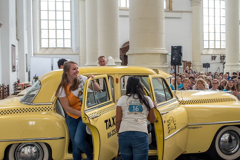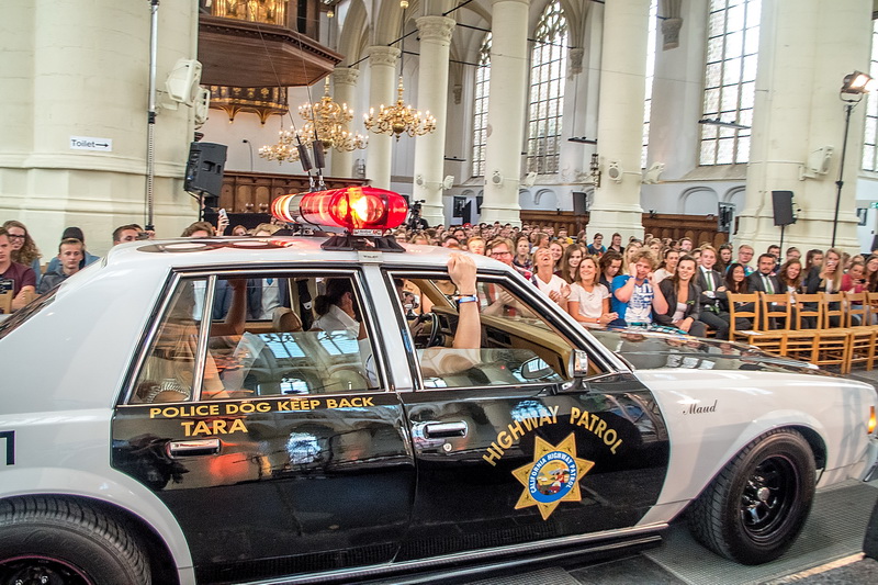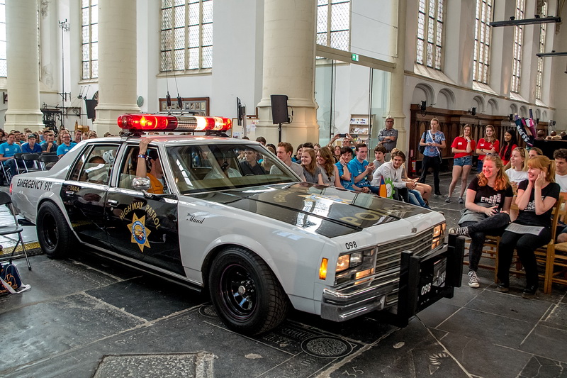 Het startschot voor de El Cidweek werd twee keer gegeven, en dus spraken zowel de rector als de burgemeester twee keer, reed de politie-auto twee keer de kerk in en was er twee keer een loterij. Achteraf gezien had het wellicht ook allemaal in één keer gekund. De kerk was beide keren zo rond halfvol. Uit gesprekken op straat met eerstejaars bleek dat redelijk wat van hen zich had onttrokken aan dit officiële deel met redevoeringen. Mogelijk ook omdat de hogeschool tijdens deze gezamenlijke introductieweek opvallend genoeg niet aanwezig was met een welkomsttoespraak voor zíjn studenten. De eerlijkheid gebiedt te zeggen dat die ook wel ietwat sleetse plekken vertoonden, alhoewel een begenadigd spreker als de burgemeester genoeg kwinkslagen op zak had “zet je fiets op slot…. maar niet als je er op zit”. Dat Leidenaren zinnen eindigen met ‘jûh’ en niet met ‘jêh’ is slechts een detail in zijn pleidooi om vooral écht Leidenaar te (willen) worden en dus ook ingeschreven te staan in deze stad (als je er woont).