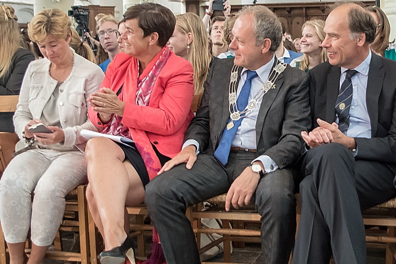 Sleutelstadreporter Reanne van Kleef was ook aanwezig bij de opening in de Hooglandse Kerk en sprak na afloop met de voorzitter van de EL CID-commissie voorzitter Liza de Nijs, burgemeester Henri Lenferink, rector Carel Stolker en Alfred van der Klis van Defensity College.
