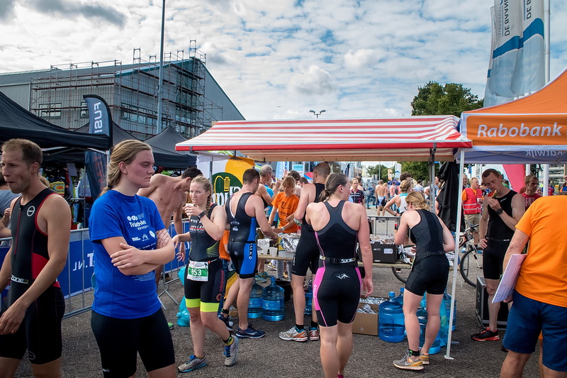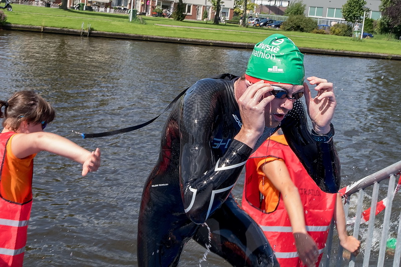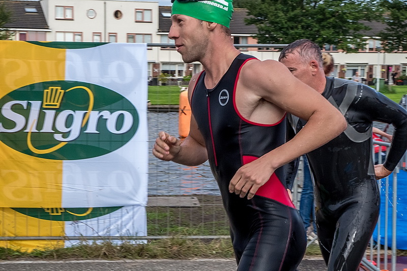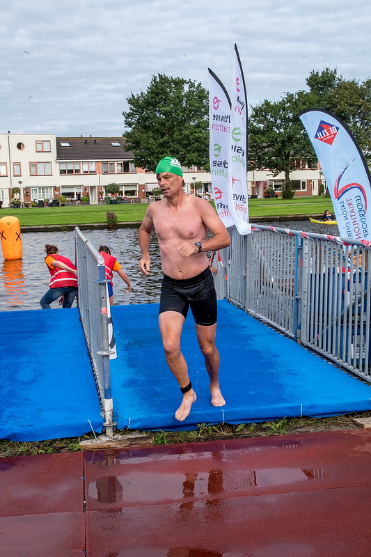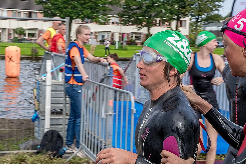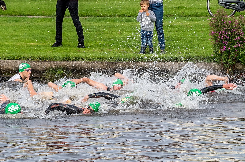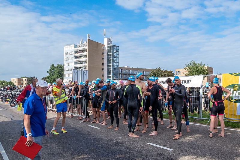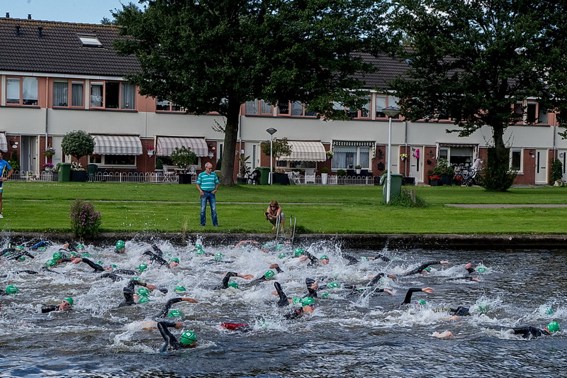 Een tijd lang was het onzeker of de triathlon ook dit jaar doorgang kon vinden. Er dreigde een tekort aan vrijwilligers. De Leiden Marathon kwam te hulp en leverde alsnog de ontbrekende handjes dus dus konden de circa 700 deelnemers gisteren aan de slag. Eerst de Zijl in. Zwemmen voor een goede startpositie bij het fietsen en lopen. Dat fietsen ging over de N445. Dat is de weg tussen Leiderdorp en Roelofarendsveen.