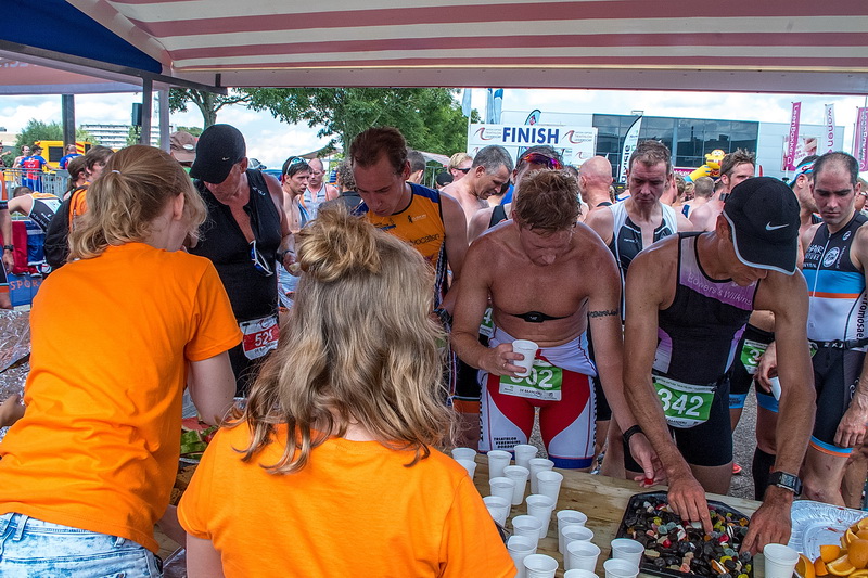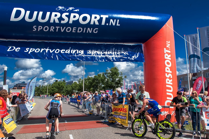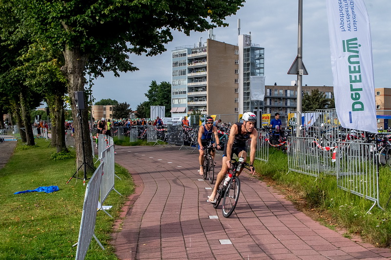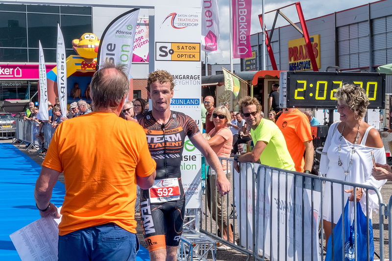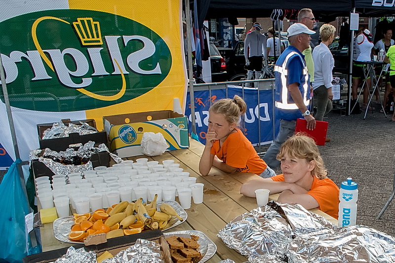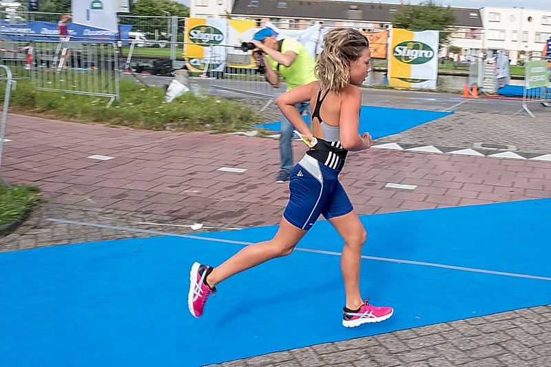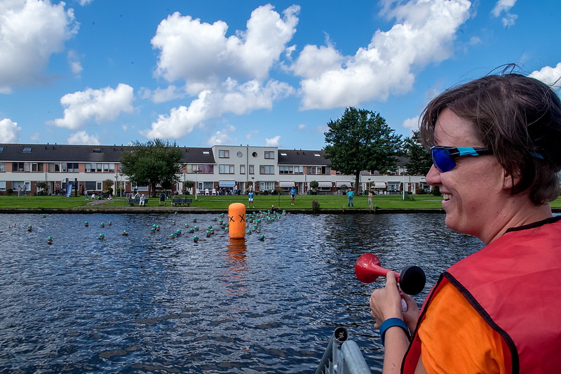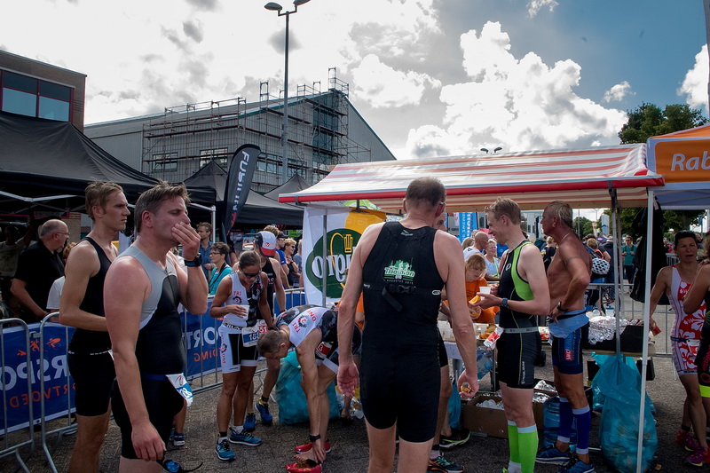 Een tijd lang was het onzeker of de triathlon ook dit jaar doorgang kon vinden. Er dreigde een tekort aan vrijwilligers. De Leiden Marathon kwam te hulp en leverde alsnog de ontbrekende handjes dus dus konden de circa 700 deelnemers gisteren aan de slag. Eerst de Zijl in. Zwemmen voor een goede startpositie bij het fietsen en lopen. Dat fietsen ging over de N445. Dat is de weg tussen Leiderdorp en Roelofarendsveen.