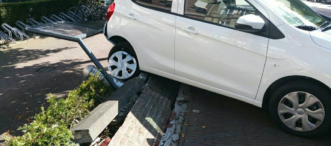 Een automobiliste heeft gisterochtend op de Steenschuur zowel haar auto als een muurtje bij de rechtenfaculteit flink in elkaar gereden. Hoe dat precies is gebeurd, is niet bekend. Mogelijk een gevalletje gas geven in plaats van remmen.