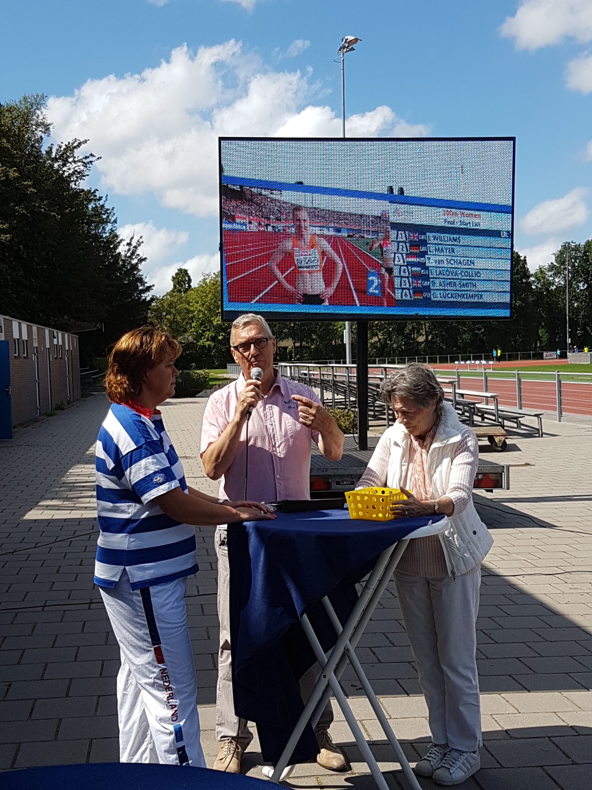 De gesprekken met Rio werden afgewisseld met interviews ter plekke. De Leidse oud-olympiërs Yvonne van Dorp en Truus Hennipman waren naar Leiden Atletiek gekomen. Ook haalde Tjeerd Scheffer Nick van Schagen voor de microfoon. De broer van Tessa van Schagen doet zelf ook aan atletiek, maar moet zijn zus voor laten gaan.