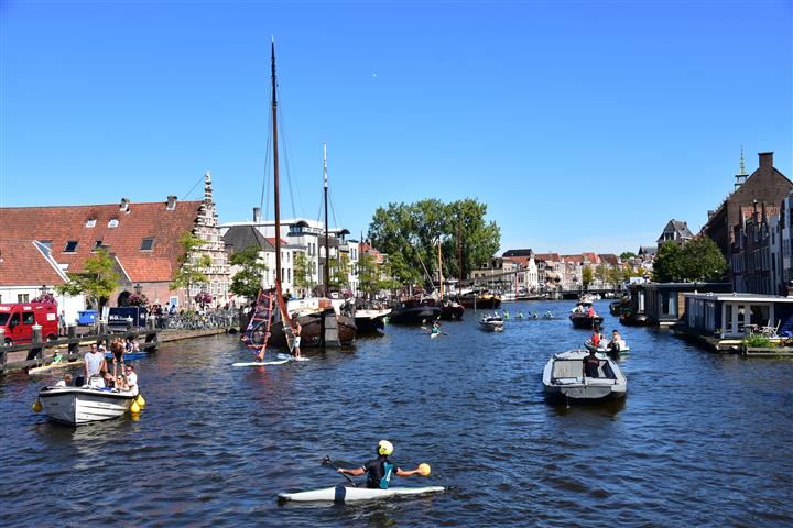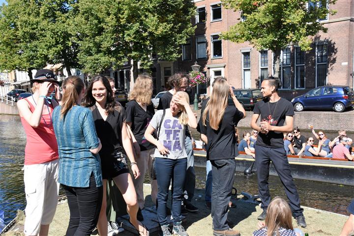 De deelnemers van de EL CID-week maakten woensdagmiddag kennis met de wateren die Leiden rijk is. Na het studieblok in de ochtend was het tijd voor waterpret op de Watersportmarkt in Park de Put. Hier vertoonden verschillende watersportverenigingen hun kunsten op het water. Bij Aquamania, Asopos, De Blauwe Schuit, Levitas, LSD, Njord en Plankenkoorts konden de aankomende studenten zelf verschillende watersporten uitproberen.