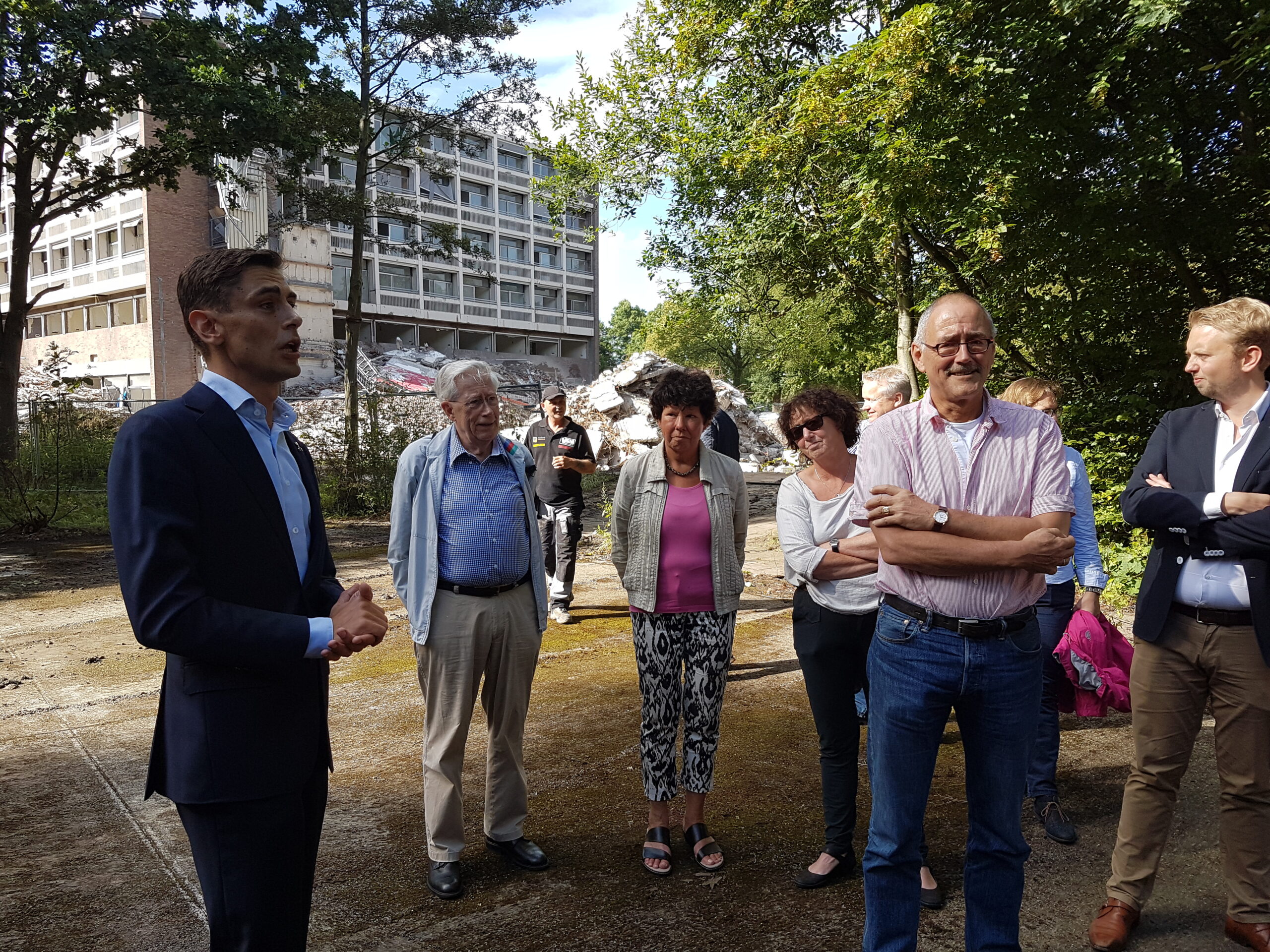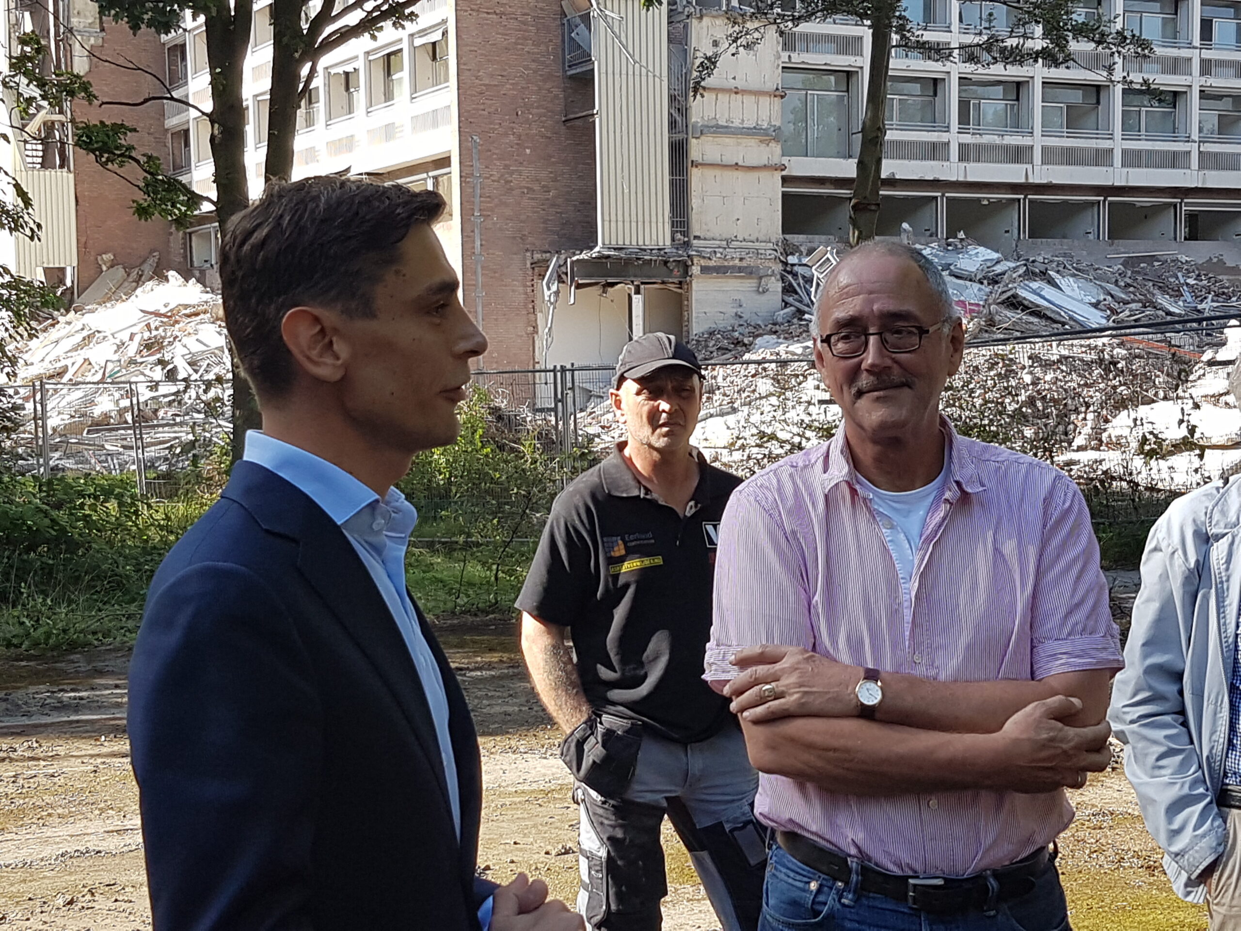 Het gebouw Nieuweroord zelf is de afgelopen weken voor een groot deel gesloopt. Dat werk vordert gestaag en gisteren is ook naast de oude gebouwen een sloophandeling uitgevoerd. Heel officieel door wethouder Paul Laudy en Marijke van Dobben de Bruijn. Het VVD-statenlid is ook omwonende en voorzitter van de Werkgroep Nieuweroord.