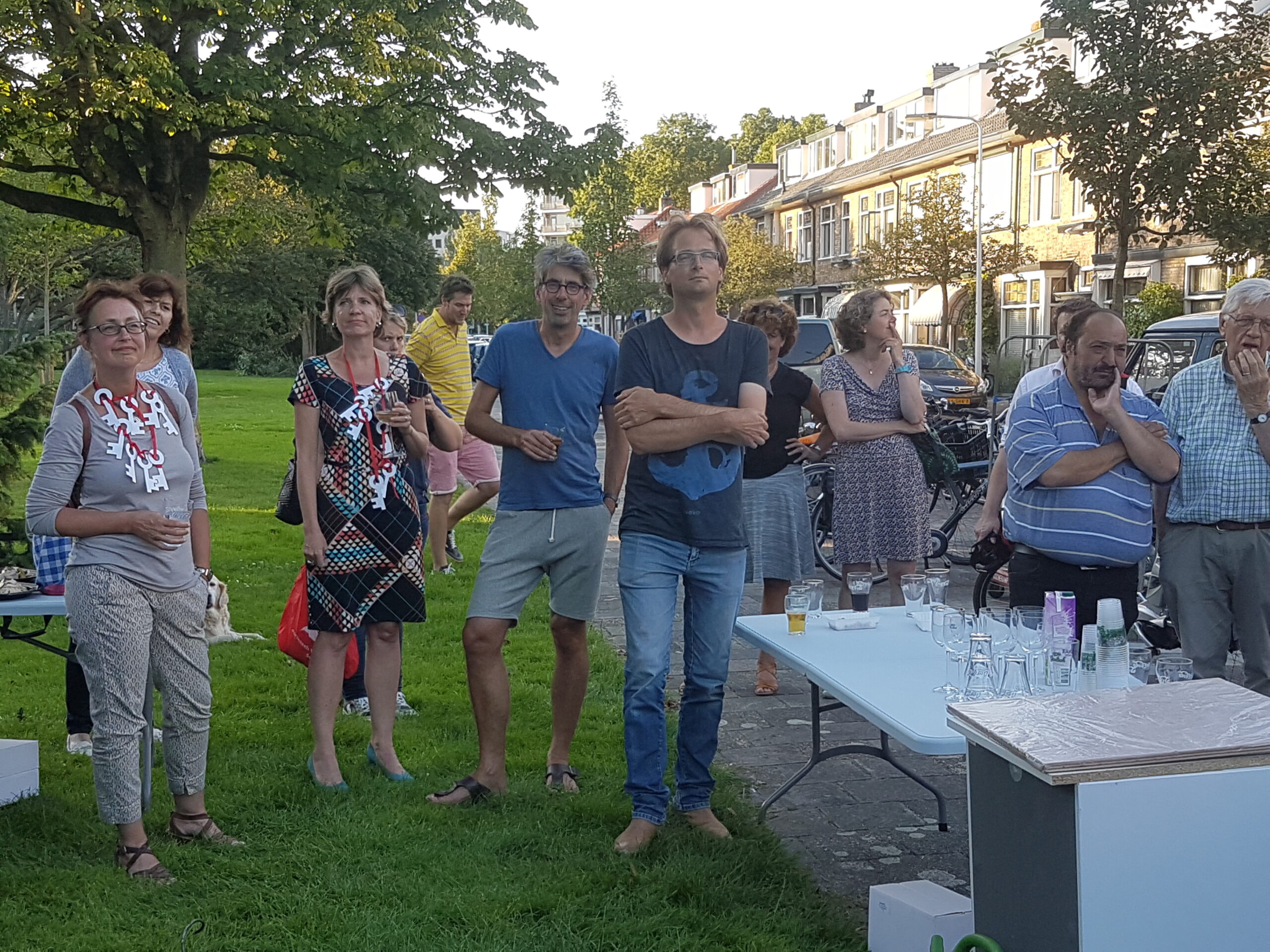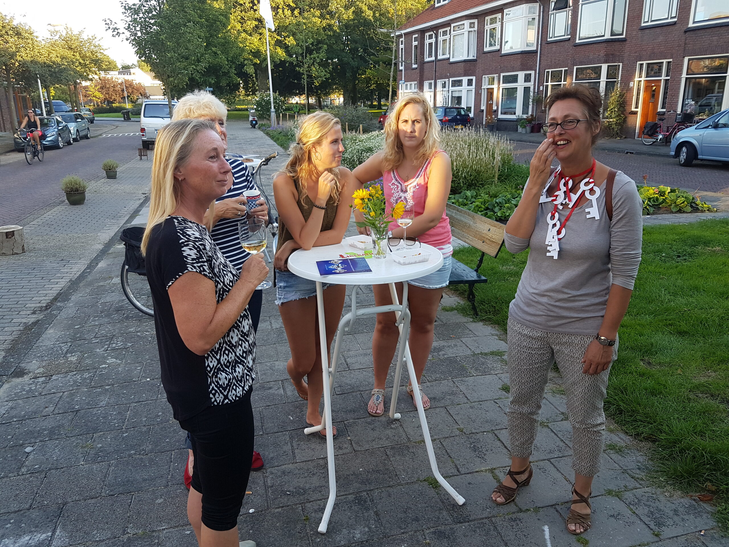 Die vond plaats in de Jacob Catslaan. Voor de deur die wethouder Marleen Damen nog geen week geleden voor het laatst achter zich dicht trok. Ze verhuisde in de laatste vakantieweek naar Nieuw Leyden. Damen heeft de wijken in haar portefeuille, maar nam gisteravond dus al haar collega’s mee voor een fietstocht langs plekken die de bewoners hadden aangewezen.