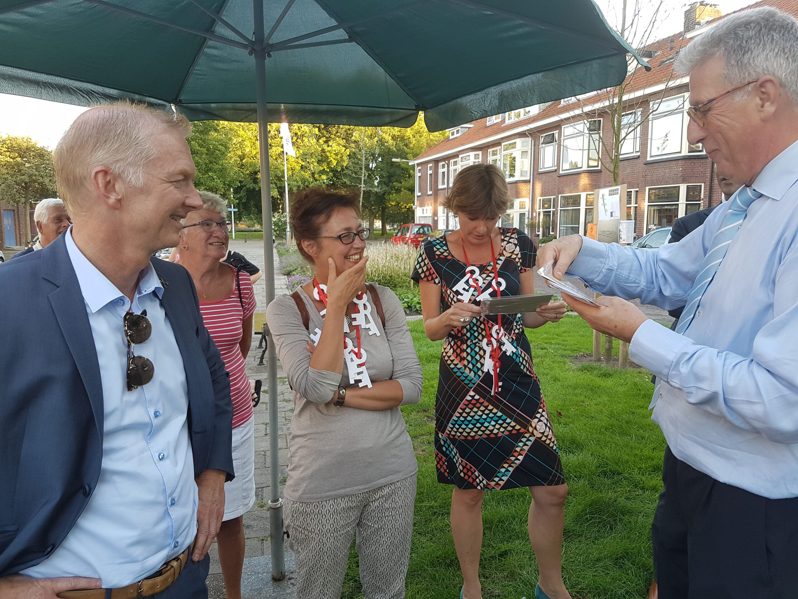 Onderdeel van de wijktour was een kennisquiz waarmee de collegeleden Leidse sleutels konden verdienen. Roos van Gelderen won met acht sleutels.