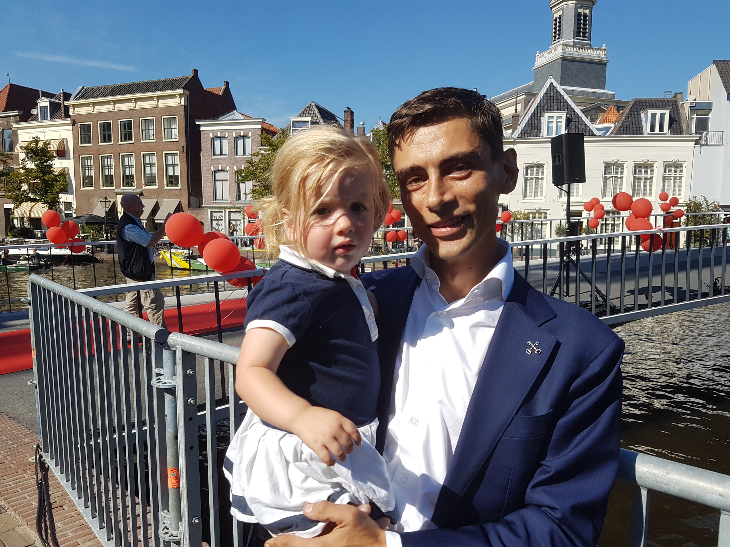 Reanne van Kleef sprak direct na de openingshandeling met wethouder Laudy en ook even met de trotse vader van Catharina.