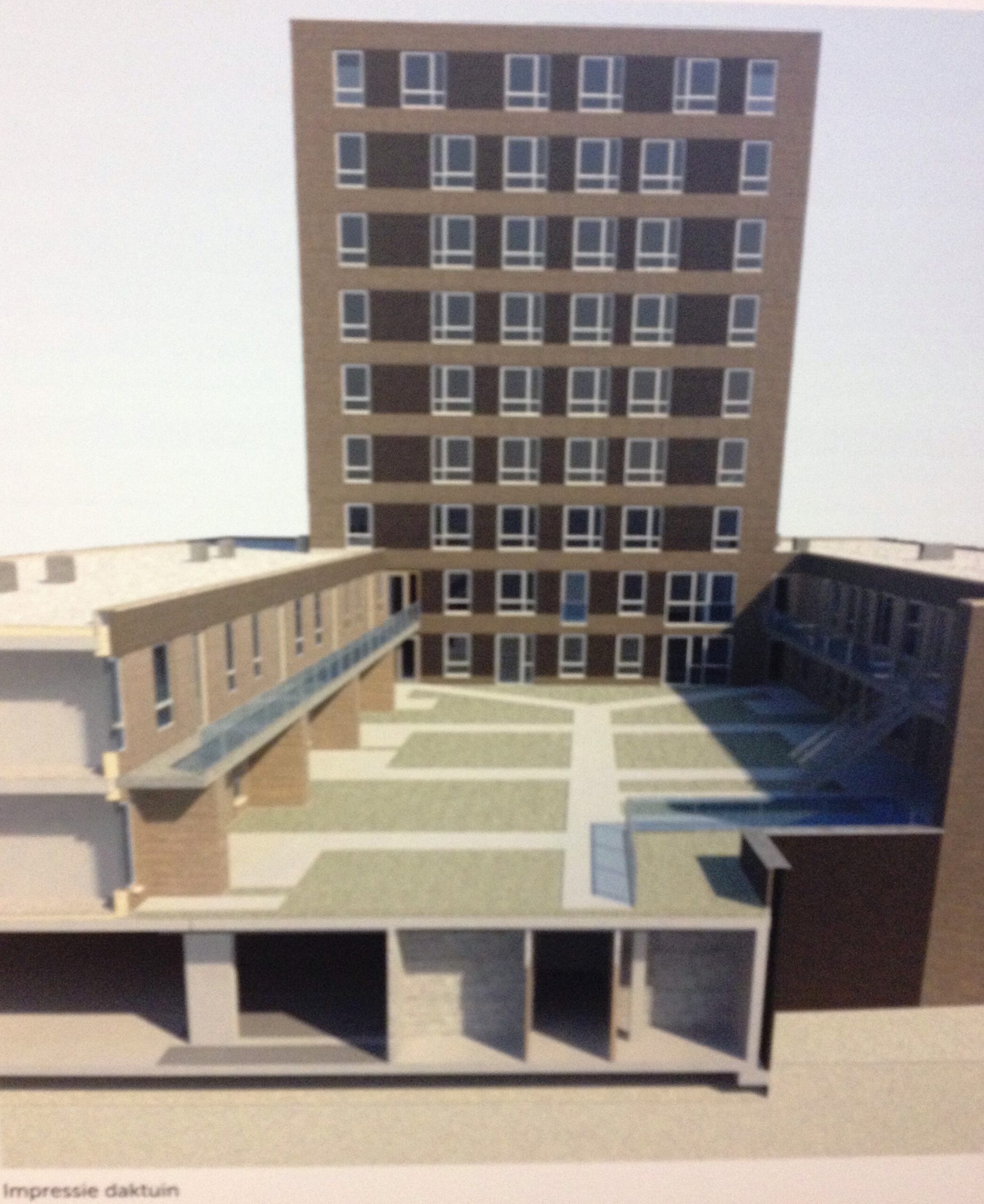 Het zal niet verbazen dat een groot deel van de vragen ging over de hoogte. Op dit moment staat er een gebouw van zo’n tien meter hoog. Er komt een dertig meter hoog gebouw aan de rotonde met daarachter lagere bouw in de orde van grootte van het bestaande. Het is de hoogbouw die tot de meeste vragen leidt. Bewoners van zowel de Hofstraat als uit de aangrenzende flat aan de Vrijheidslaan/Lasserstraat maken zich zorgen: niet alleen gaat hun uitzicht ingrijpend veranderen, maar hoe zit het met inkijk? Hoe met bezonning? Hoe met vrij zicht op de lucht? “Ik kan nu in de zomer tot half een op het balkon in de zon zitten. Volgens mij kan dat zometeen niet meer” is de angst van een Hoflaanbewoonster. De hoogbouw komt inderdaad pal zuid en blokkeert dus de zon, maar volgens de architect (Gert de Graaf van buro Groosman uit Rotterdam) valt het allemaal mee “we hebben echt heel serieus en goed gekeken naar zulke effecten. De hoogbouw is net zo hoog als de flat die ernaast staat. Daar kun je nu zien hoe ver de schaduw komt. Minder ver dan men denkt. En afname van privacy en inkijk omdat de nieuwe bewoners in je tuin kijken? Er komt bij de binnentuin een echt heel brede groene haag”.