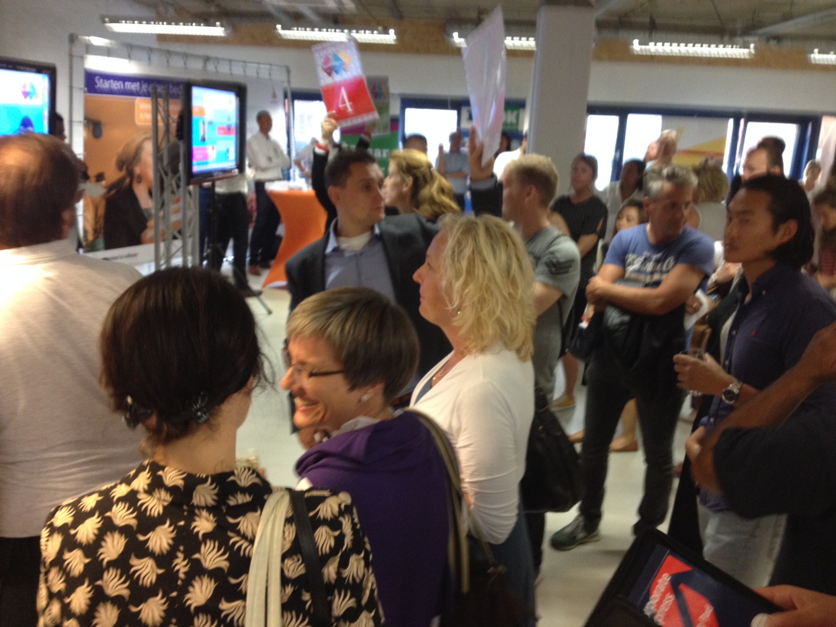 De slecht verstaanbare plenaire delen waren gelukkig verder vooral van huishoudelijke aard. De helft van de zaal kletste er gewoon doorheen, waarschijnlijk al volop aan het netwerken. In hoeverre dat altijd effectief bleek? Het gezelschap bleek nogal uiteenlopend. Bradley(36) heeft al een bedrijf, Immanuel Autoschadeherstel, gebaseerd op een stevige kwaliteitsreputatie “maar ik wil het bedrijf steviger in elkaar zetten”. Of Rogier(34) die een eigen barbershop wil openen in Leiden – en in Rotterdam al een Schoremdiploma behaalde – en nu bij de politie werkt. Weer heel anders wordt Hugging A Cactus van Maurice(29) en Anne(28): online ondersteuning van persoonlijke groei, te beginnen met een blog. Ideeën verwerkelijken en idealen nastreven. Ook daarin zijn de starters veranderaars: natuurlijk is een inkomen belangrijk, maar plezier in je werk óók. “Je moet dan wel kunnen omgaan met onzekerheid”, hield ondernemer Patrick hen voor, “je weet niet altijd hoe je financiële perspectief is. Wat je hebt over een paar maanden. Daar moet je tegen kunnen”.