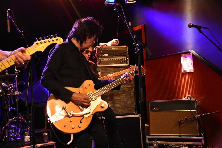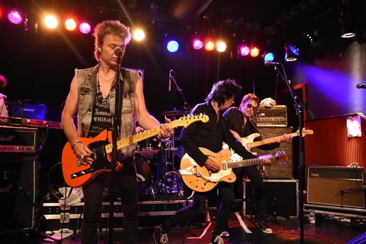 Qbus was aardig vol. Zo’n honderdvijftig mensen namen de moeite te komen. Voor Qbus is dat een mooi aantal: je kunt zonder veel moeite alles zien en ook nog rondlopen, het wordt net zó warm als bij een concert van een groep als deze hoort – licht zweten – en je staat zowat op de lip van die illustere namen. Wild Romance is een band waar de muziek nog centraal staat. Een hyperdynamische lichtshow pas daar niet bij (en ook niet in Qbus). Wat er wel bij past, is die sfeer van mannen glimmend van het zweet op het podium die af en toe solerend los leken te komen van de werkelijkheid. Rock op z’n best, hardwerkend en gierend. De blikken van Hollestelle deden vermoeden dat ook de band af en toe herinnerde, maar vooral lól had.