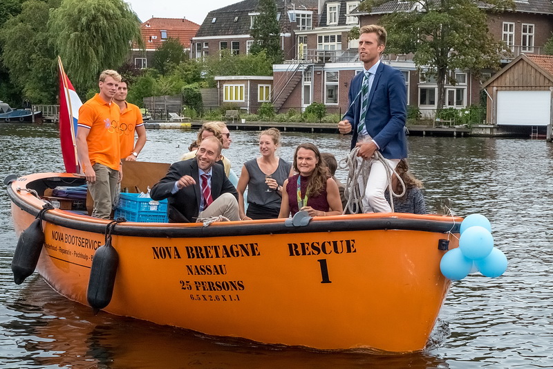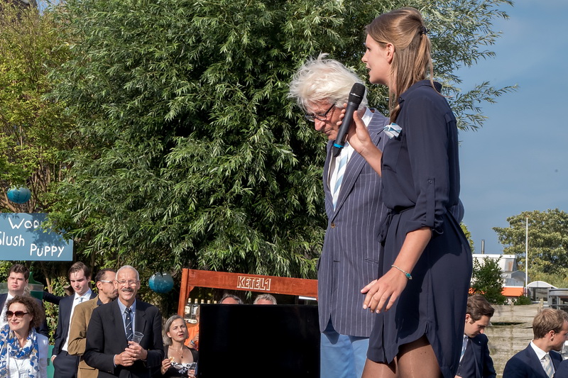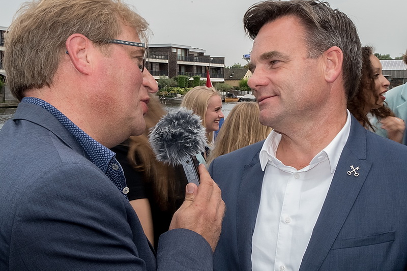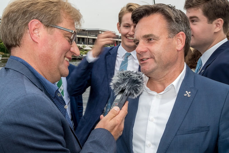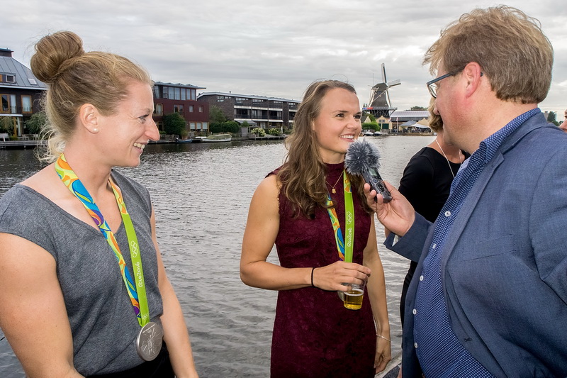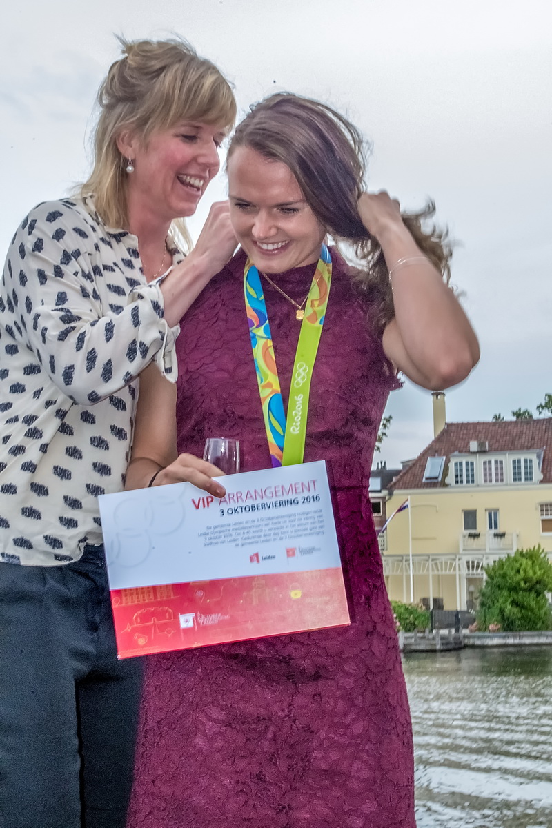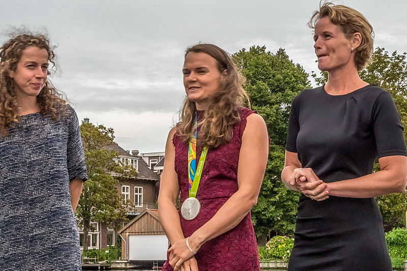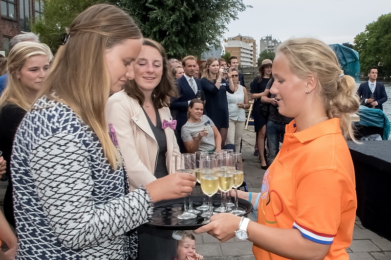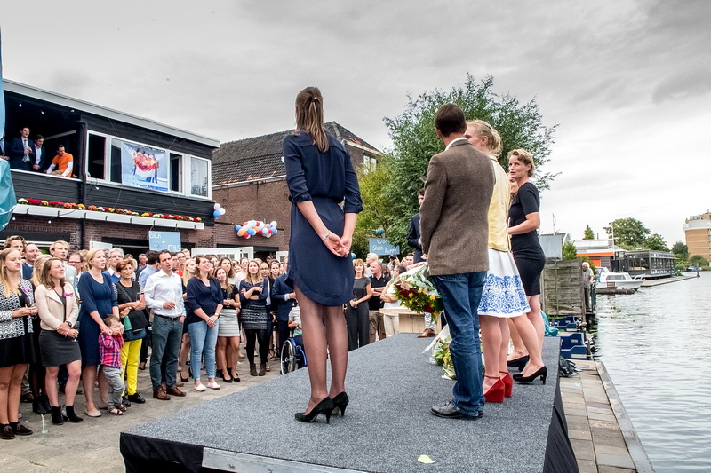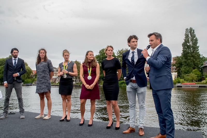 Rond 18.00 uur arriveerde de oranje sloep bij de loods van Njord waar de olympiërs werden opgewacht door een grote groep belangstellenden. Over de blauwe loper, de kleur van de vereniging, werden ze op het podium verwelkomd. Hier werden ze onder andere toegesproken door sportwethouder Paul Dirkse en bronsen medaille winnares in Londen Jacobine Veenhoven.