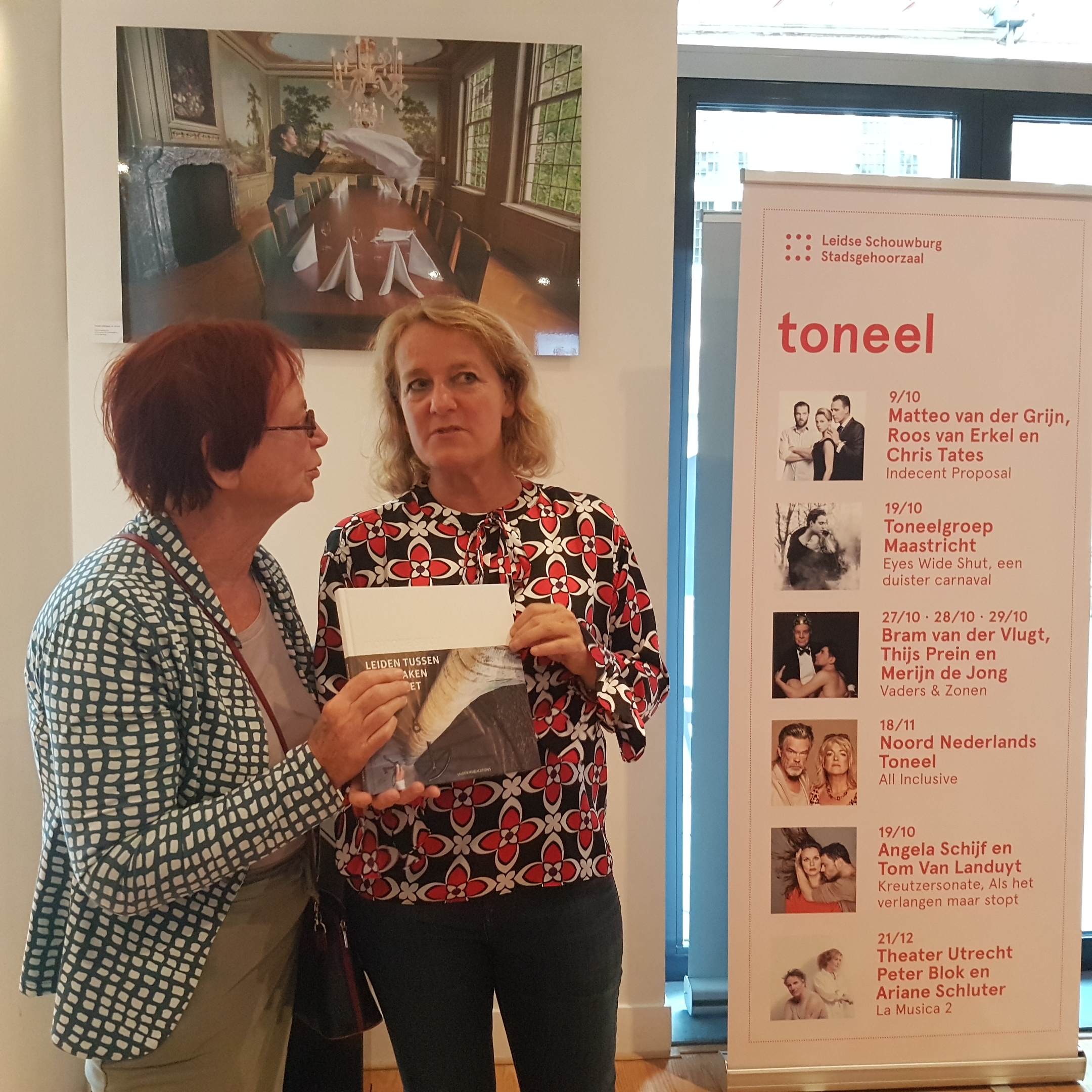 “Weet jij je vraag nog?” Monique Shaw uit Oegstgeest neemt afscheid als stadsfotograaf van Leiden in een bijeenkomst die de komst van de nieuwe stadsfotograaf, Vincent Dekkers uit Rotterdam, enigszins doet ondersneeuwen. Zozeer dat het vier valse starts kost voordat iets wat op een vraaggesprek lijkt, kan plaatsvinden. De een na de ander wil afscheid nemen, maar vooral een handgeschreven persoonlijke noot in haar óók deze middag ten doop gehouden fotoboek. Shaw ontwikkelde zich afgelopen jaar tot een bekende en gewaardeerde Leidenaar, zoveel is minstens duidelijk. De foyer van de Stadsgehoorzaal was goed gevuld.