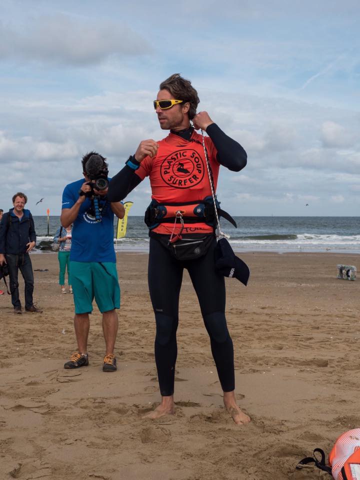 Onder grote belangstelling kitesurfde Leidenaar Merijn Tinga afgelopen vrijdag naar de Britse kust. Op een surfboard gemaakt van plastic afval vertrok de Plastic Soup Surfer vanaf het strand van Scheveningen om negen uur later het eindpunt te bereiken. Een recordtijd, zoals gehoopt, werd het niet. De 176 kilometer lange tocht begon ook al niet onder ideale weersomstandigheden. Harde tegenwind en golven van wel 2,5 meter zorgden voor een zwaar begin. Midden op zee raakte Tinga tijdelijk verstrikt in een net.