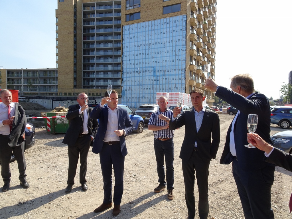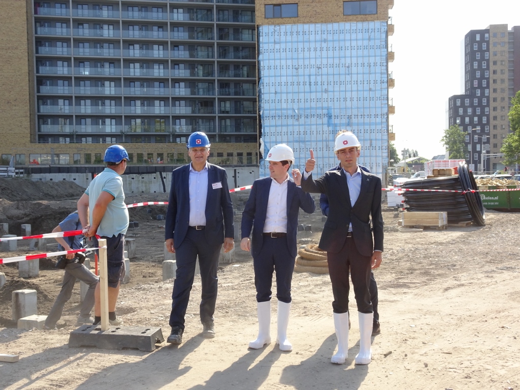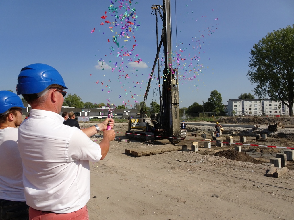 De bouw van appartementencomplex ‘De Kroon van Noord’ is van start gegaan. Donderdagmiddag werd door bouwwethouder Paul Laudy niet de eerst maar de laatste paal geslagen. Het complex wordt gerealiseerd aan de Gooimeerlaan in het Noorderkwartier. In 2018 komen hier vijftig appartementen in de vrije sector beschikbaar.