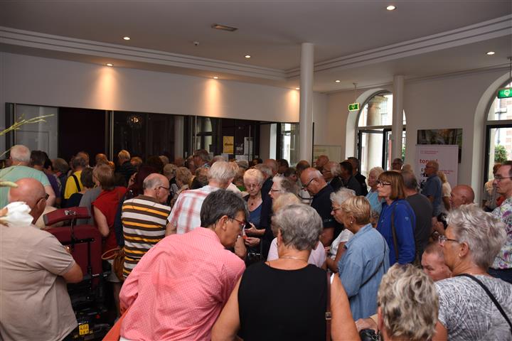 Lange rijen bij de Stadsgehoorzaal gisteren. Daar vond, in de entreefoyer waar de 3 October Vereeniging de komende weken haar servicepunt heeft ingericht, de inschrijving plaats voor de seniorenvoorstelling. Dat het druk is, is logisch. De kaarten zijn gratis voor leden van de vereniging en het aantal plekken is beperkt tot 800.