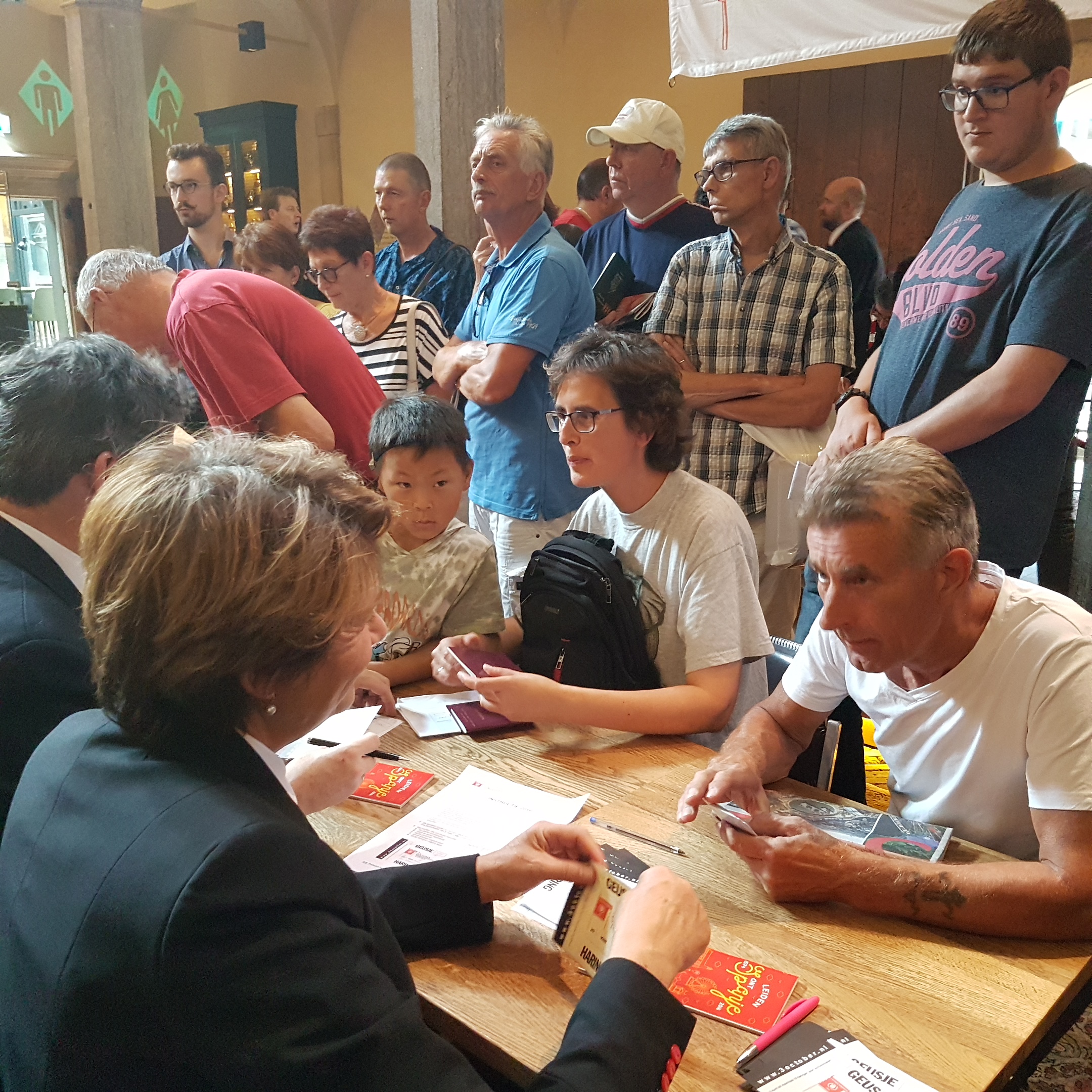 Nooit eerder kwamen zoveel mensen als vandaag zich inschrijven voor de gratis hutspotmaaltijd die dit jaar op 1 oktober wordt geserveerd. Omdat twee oktober op zondag valt. Er moeten 6827 borden volgeschept worden en dat zijn er 11% meer dan vorig jaar. Ook het aantal haringen oversteeg de inschrijving van 2015. 32.112 tegen 31.000 vorig jaar.