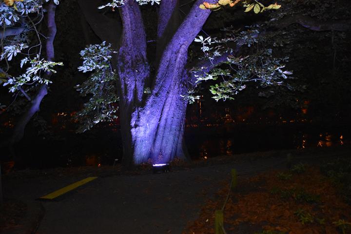 “Op elkaar lijken?” Nee, daar is Minke Schat – laten we zeggen, de ‘moeder van de Nacht van Kunst en Kennis’ – het mee oneens. “Er wordt wel degelijk anders geprogrammeerd”. En eerlijk is eerlijk: ze heeft gelijk. Het zijn dan wel dezelfde (zeven) locaties, maar de inhoud is net anders. Daar moet je dan wel op attent zijn. Want onbetwist Koningin van de Nacht is wéér de Hortus, die bij de ingang bruist van leven en waar, hoe dieper je doordringt, door Blauwe Uur een hypnotiserend lichtspel met bomen en struiken wordt getoond. Een plek waar je úren kunt blijven; en waar rond middernacht dan ook mensen op het gras liggen en naar de door het licht bewegende doodstille boom kijken.