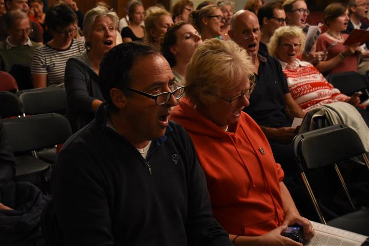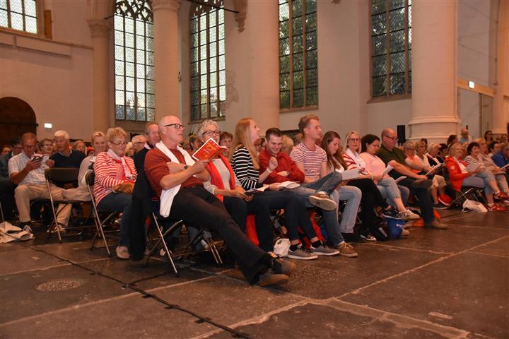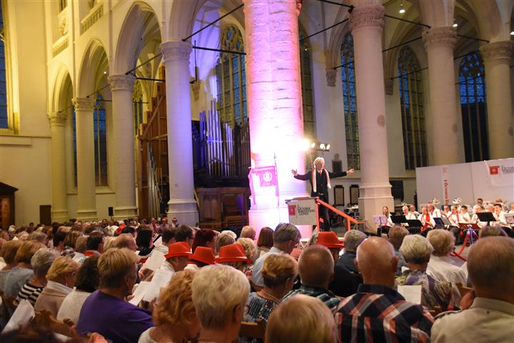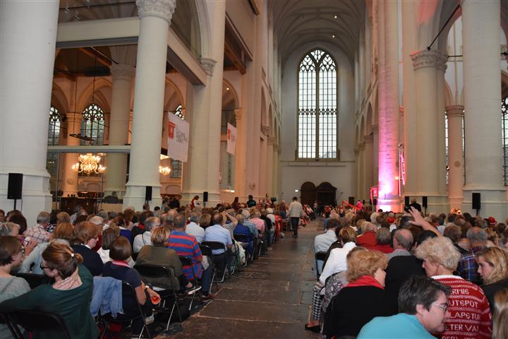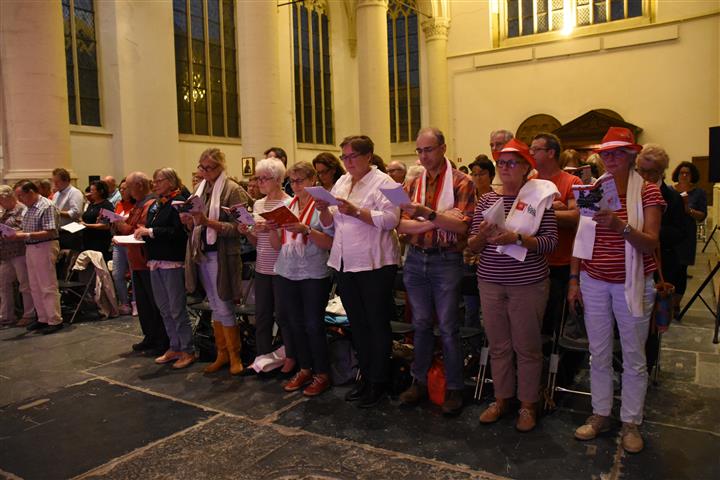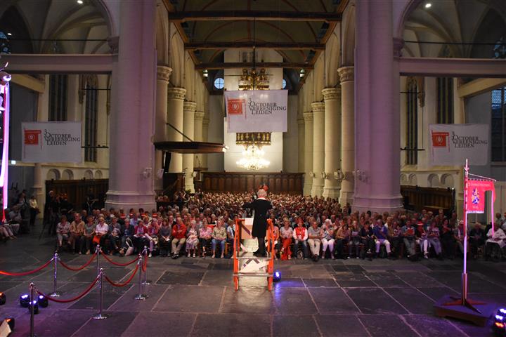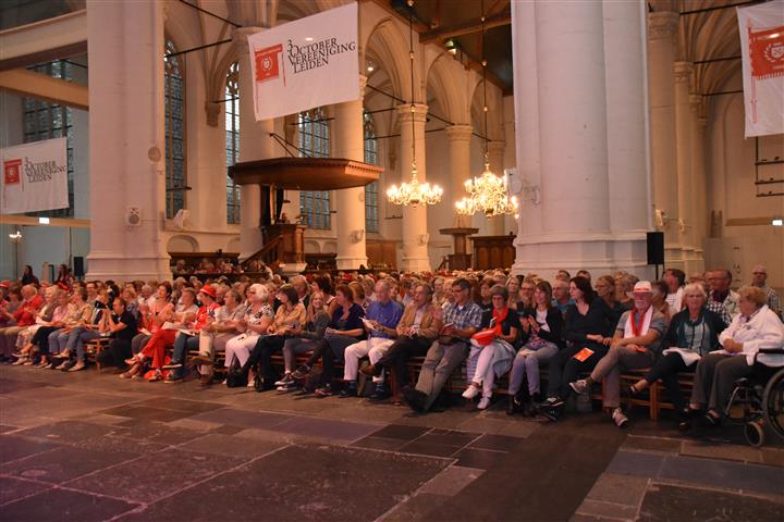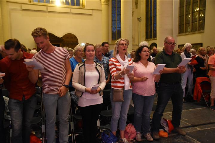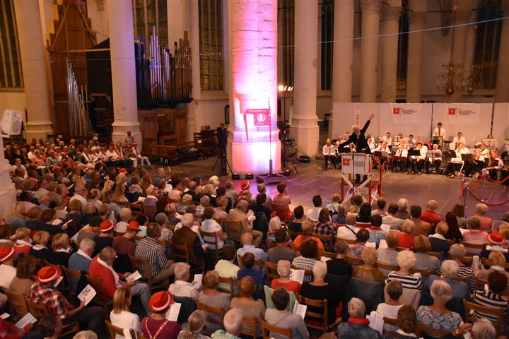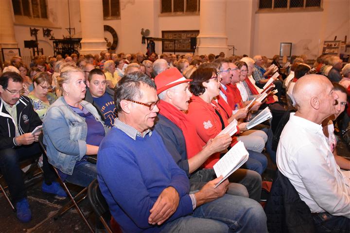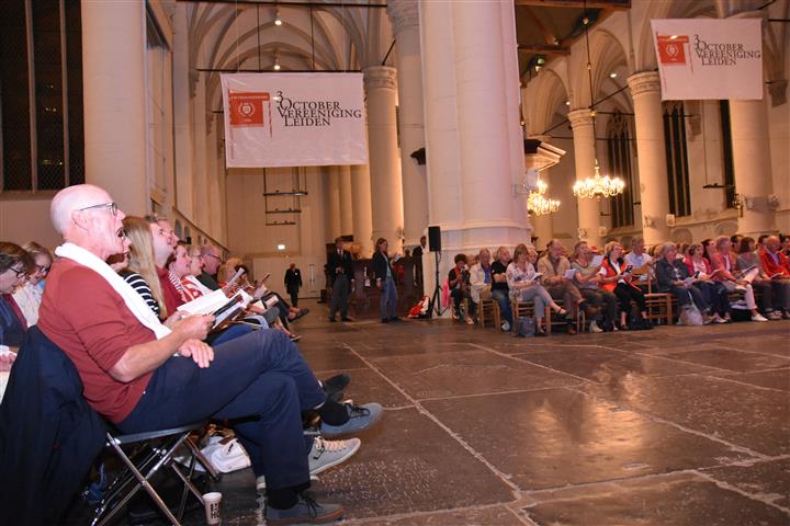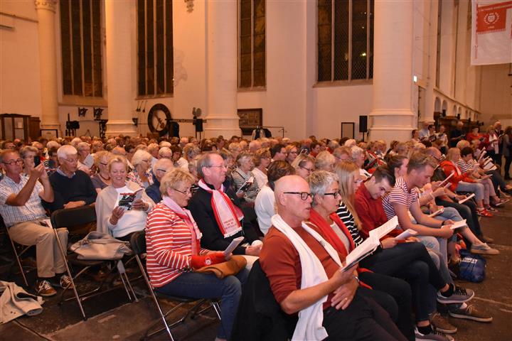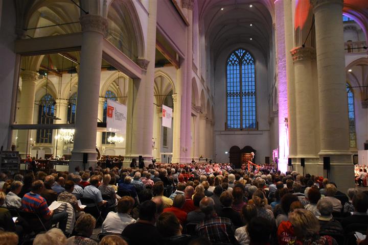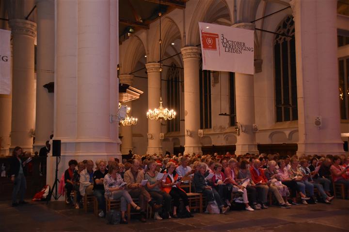 In de Hooglandse Kerk werd afgelopen woensdag weer geoefend voor de koraalzang die op 3 oktober in het Van der Werfpark wordt gehouden. Onder leiding van dirigent Wim de Ru werd door een record aantal mensen de liederen ingestudeerd. Ruim 1200 mensen bezochten dit jaar de repetitie. Door een nieuwe indeling in de kerk kon iedereen de dirigent goed zien.