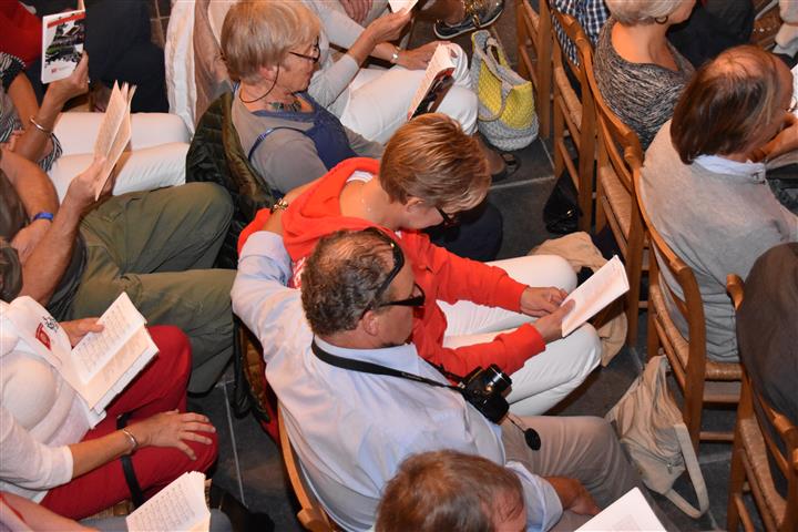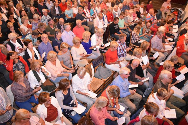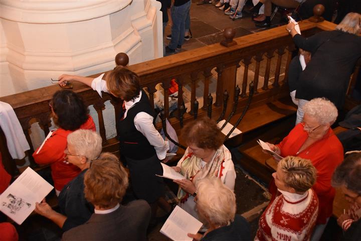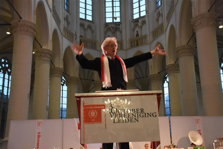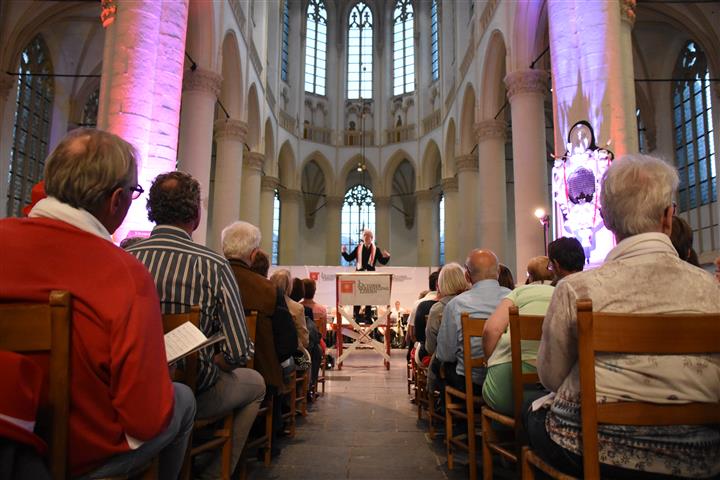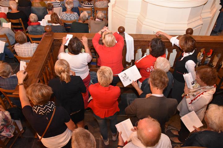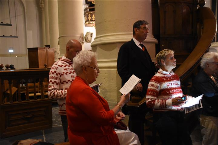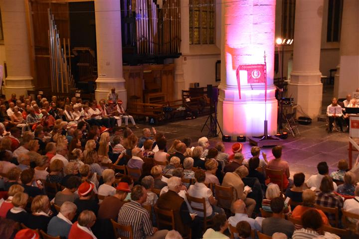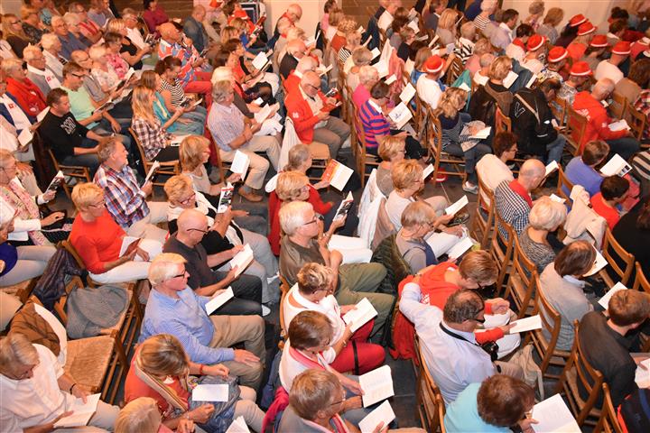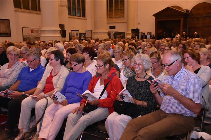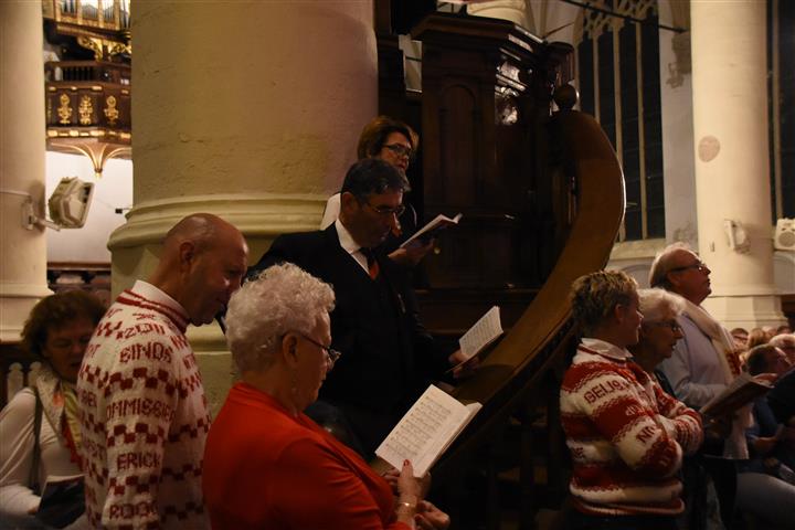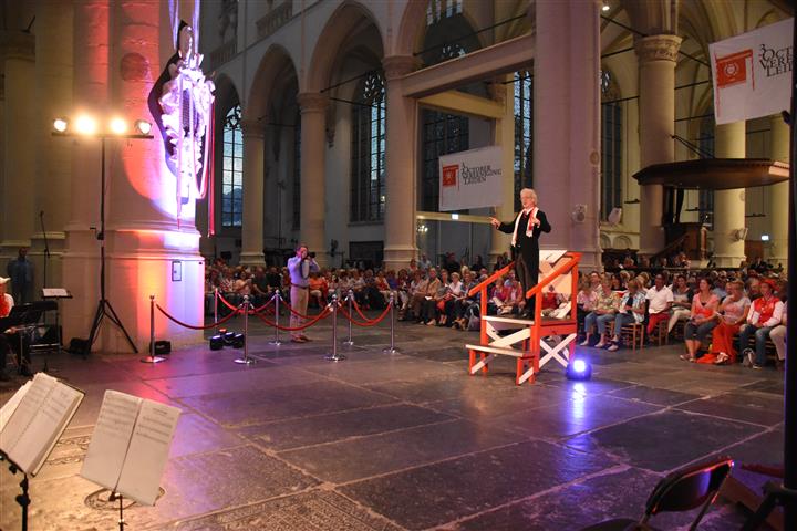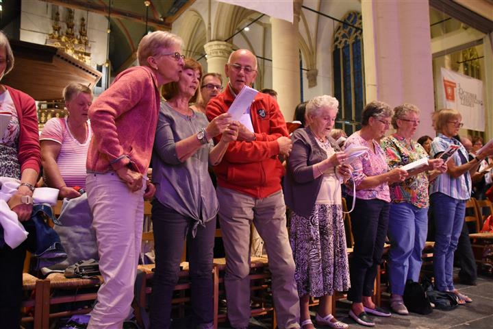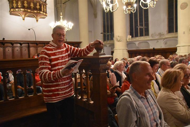 In de Hooglandse Kerk werd afgelopen woensdag weer geoefend voor de koraalzang die op 3 oktober in het Van der Werfpark wordt gehouden. Onder leiding van dirigent Wim de Ru werd door een record aantal mensen de liederen ingestudeerd. Ruim 1200 mensen bezochten dit jaar de repetitie. Door een nieuwe indeling in de kerk kon iedereen de dirigent goed zien.