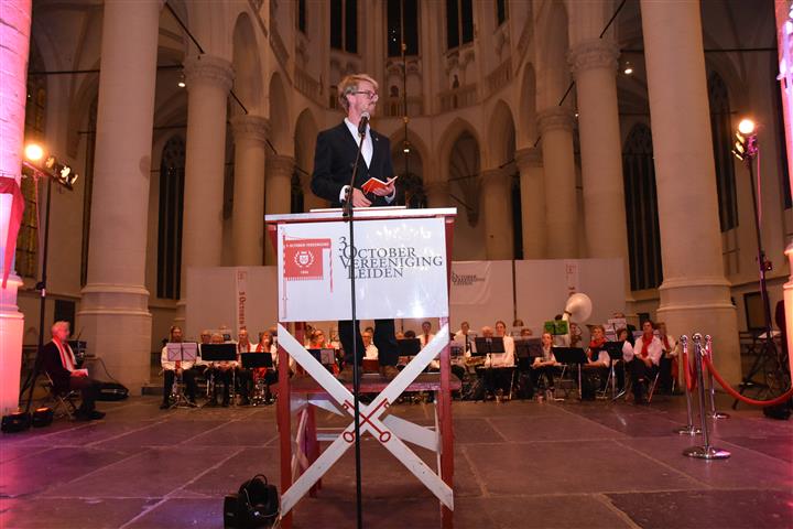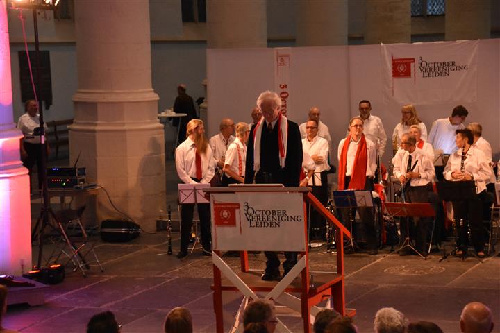 Het orkest bestond uit Werkmans Wilskracht, Concordia en Die Schlüsselstädter Musikanten. Ook stadsdichter Wouter Ydema was aanwezig. Net als vorig jaar droeg hij een Leids gedicht voor. De avond werd afgesloten met de traditionele bloemlegging op het graf van burgemeester van der Werff en het Wilhelmus.