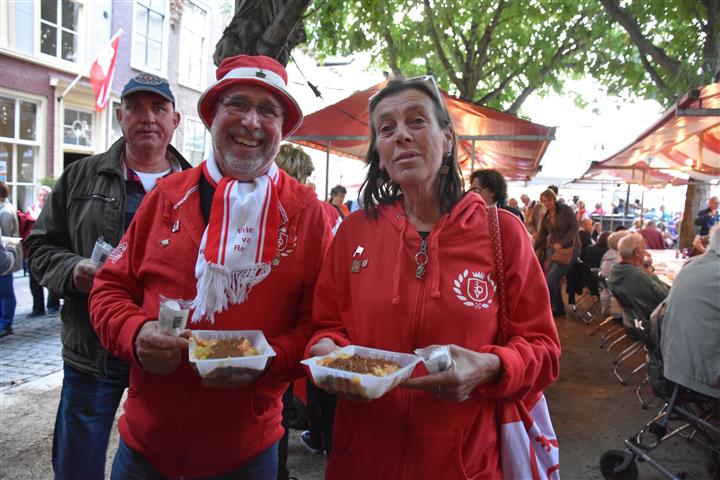 Sleutelstad-verslaggevers Reanne van Kleef en Stijn van Vucht namen ook even een korte eetpauze om een lekkere bak hutspot te verorberen.