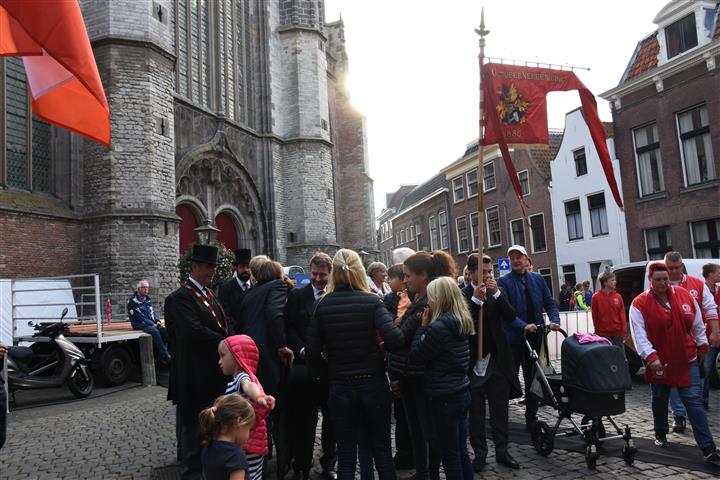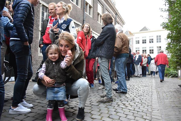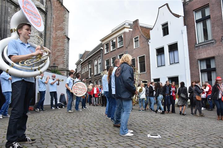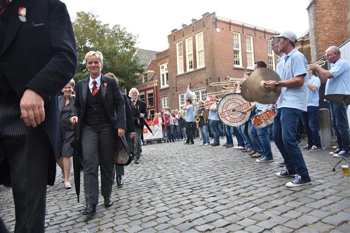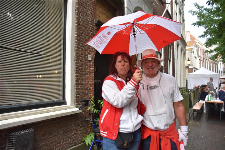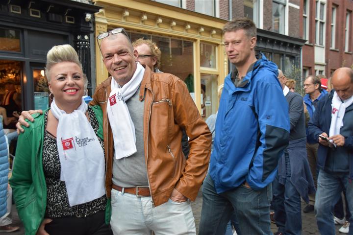Na het hutspot-eten liep een deel van het verzamelde publiek via de Koppenhinksteeg richting Kaasmarkt waar aansluitend werd opgesteld voor de Taptoe.