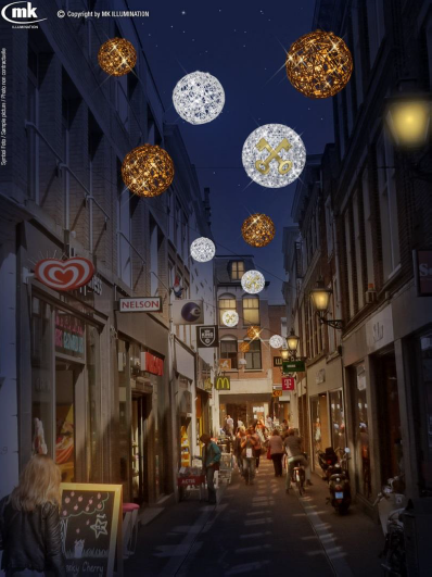 De sfeerverlichting bestaat uit organische bollen van gerecycled materiaal, geverfd met een verf op basis van zonnebloemolie. Voor de kleuren van de bollen, goud en wit, en de LED-verlichting is rekening gehouden met de kleur licht van de Leidse lantaarn. Om de sfeerverlichting een extra Leids tintje te geven worden de bollen aan het begin en einde van de straten voorzien van de Leidse sleutels. De bollen zijn ontworpen door MK Illumination.
