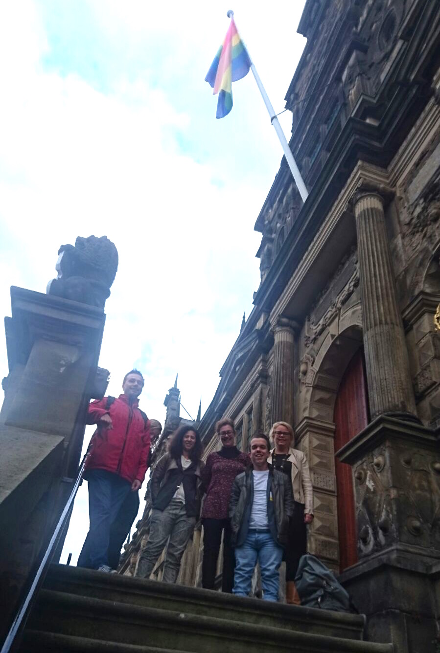Vanochtend werden op verschillende plekken in Leiden en de regio de regenboogvlaggen gehesen vanwege de jaarlijkse Coming Out Dag. In Leiden hees wethouder Roos van Gelderen samen met het bestuur van COC Leiden de regenboogvlag op het bordes van het stadhuis. Daarna werd door het bestuur van de LHBT-belangenvereniging de vlag in Katwijk gehesen samen met een deel van de gemeenteraad. In Noordwijk verfden leerlingen van het Northgo College de brug naar hun school in de regenboogkleuren.